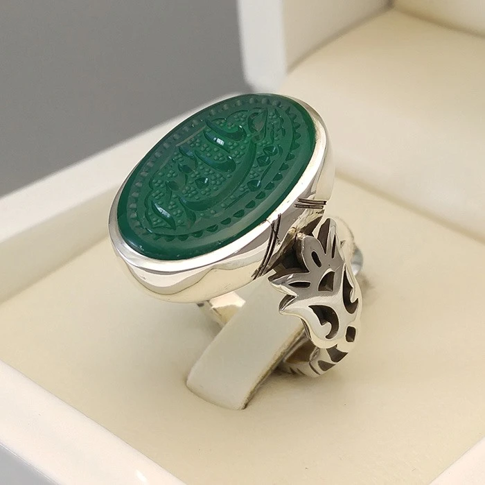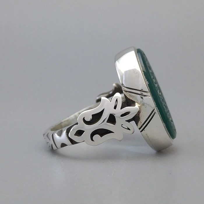 انگشتر نقره مردانه نگین عقیق سبز خطی
