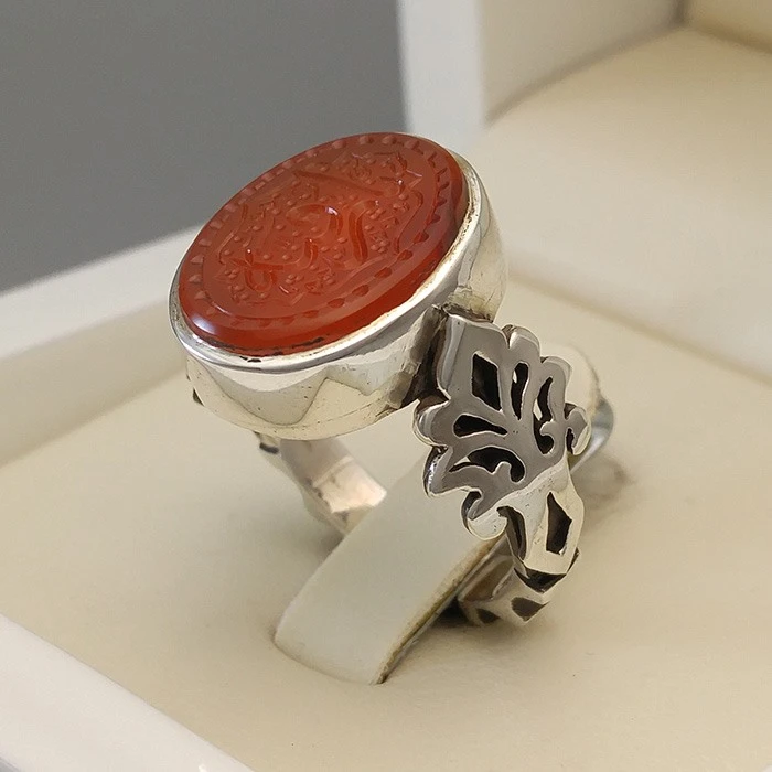 انگشتر نقره مردانه عقیق یمنی سرخ خطی