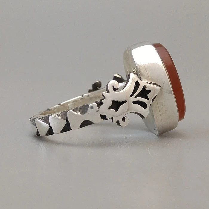 انگشتر نقره مردانه عقیق یمنی سرخ خطی