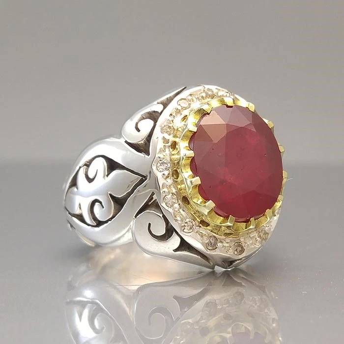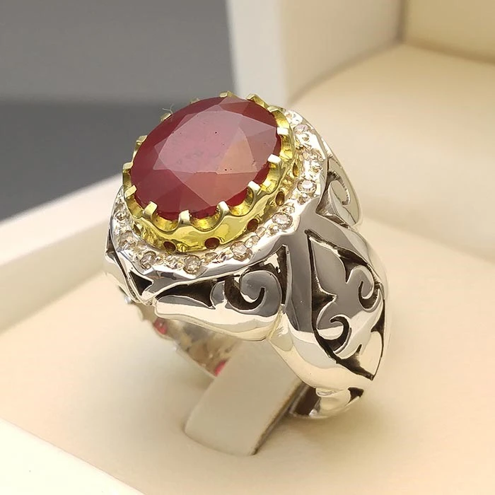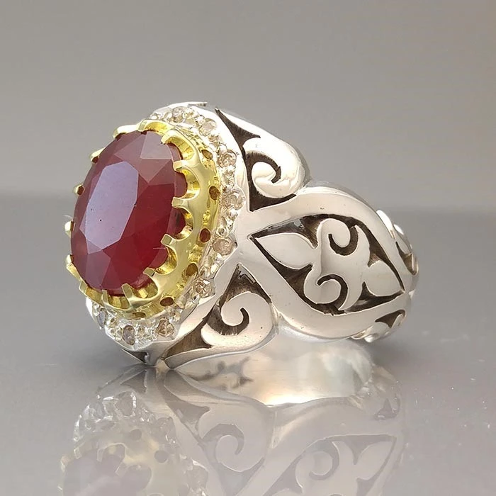 انگشتر نقره مردانه یاقوت سرخ کد S2122