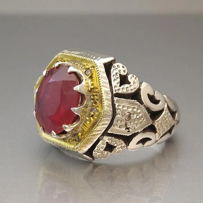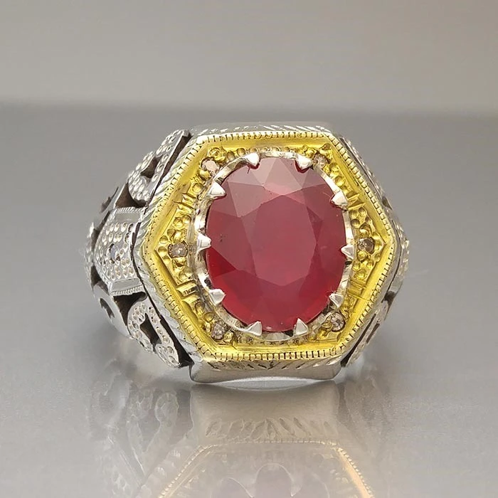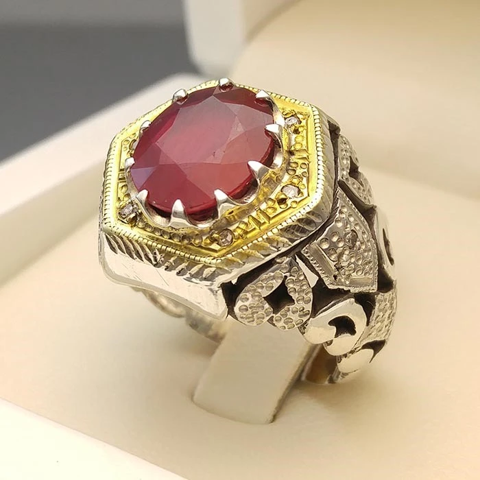 انگشتر نقره مردانه یاقوت سرخ کد S97931