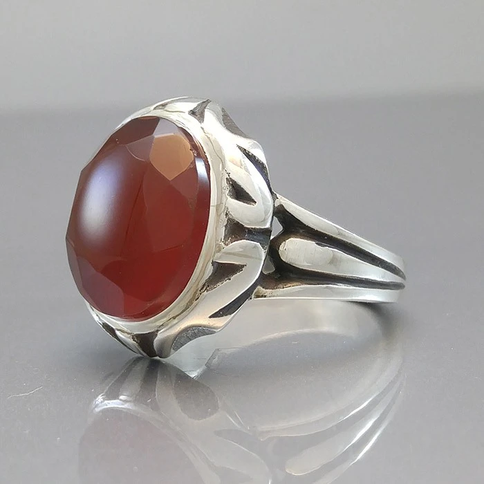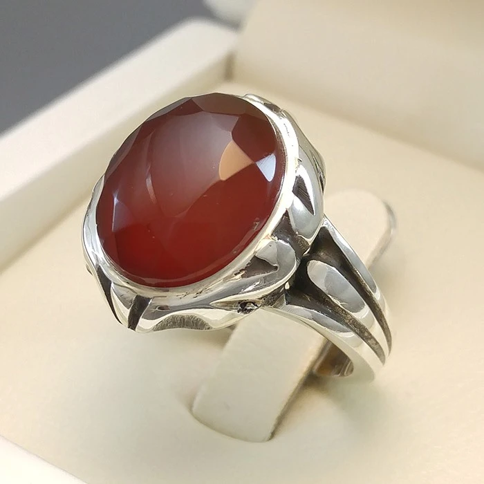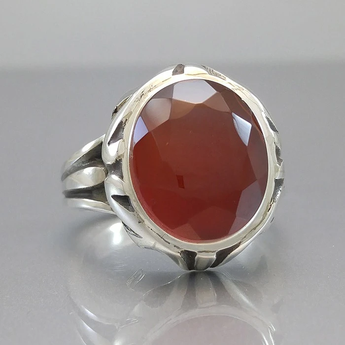 انگشتر عقیق یمنی سرخ الماس تراش کد S2137