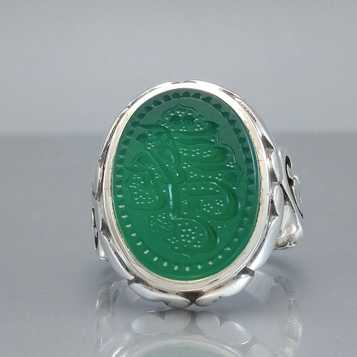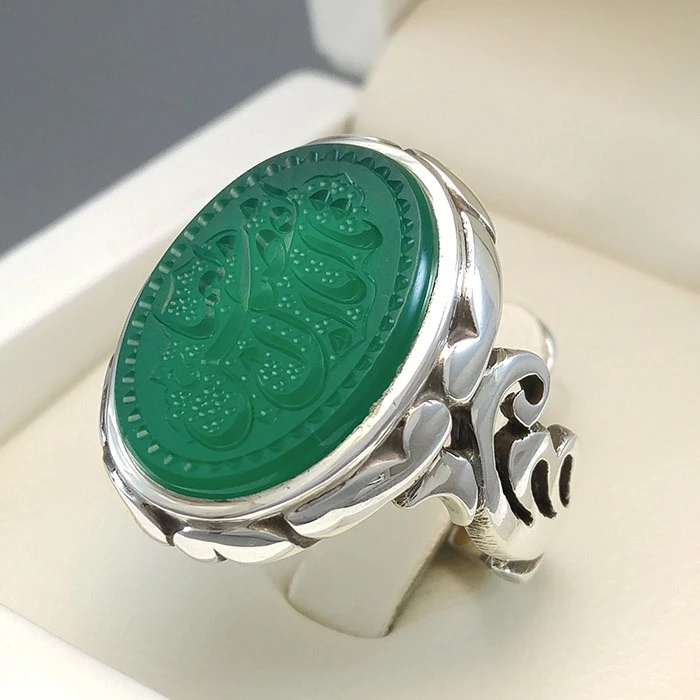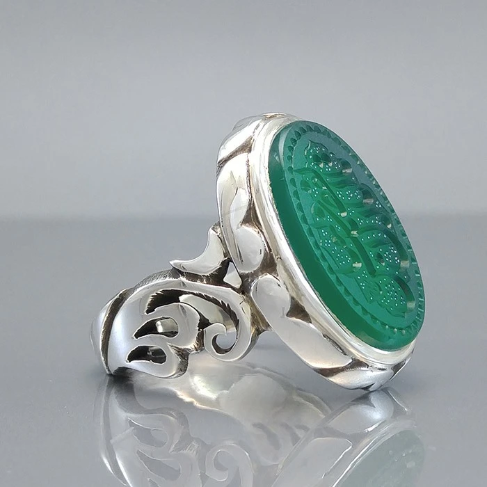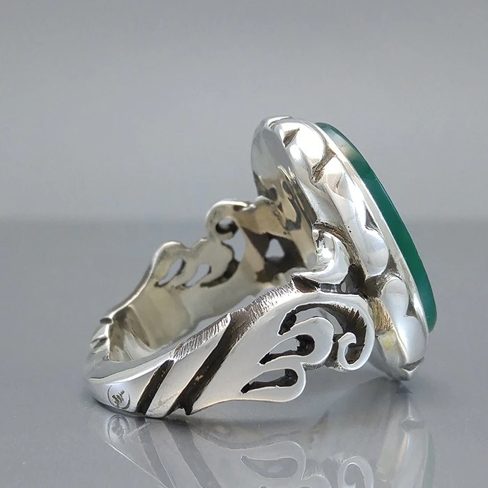 انگشتر نقره مردانه عقیق سبز خطی کد S106729