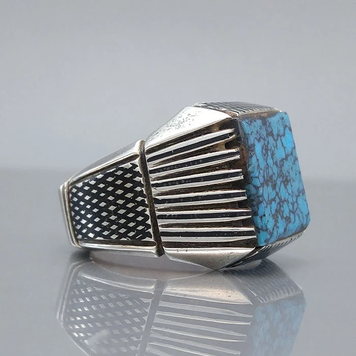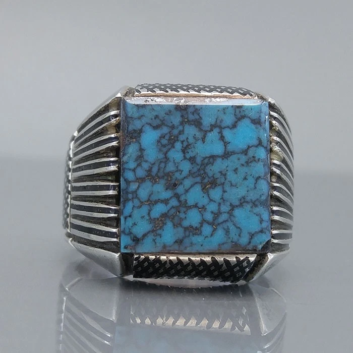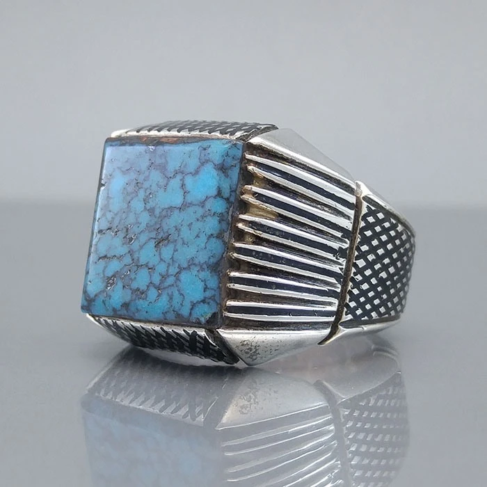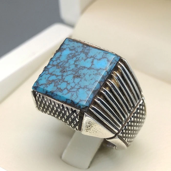 انگشتر نقره مردانه فیروزه نیشابور کد S106738