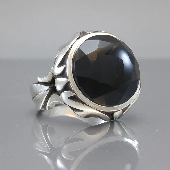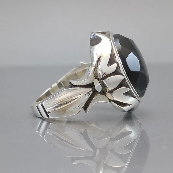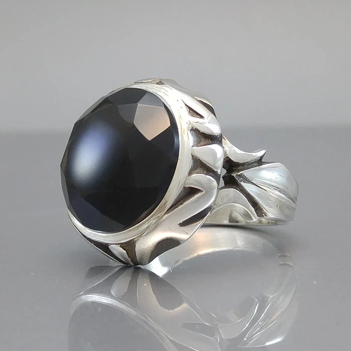 انگشتر نقره مردانه عقیق یمنی مشکی کد S106745