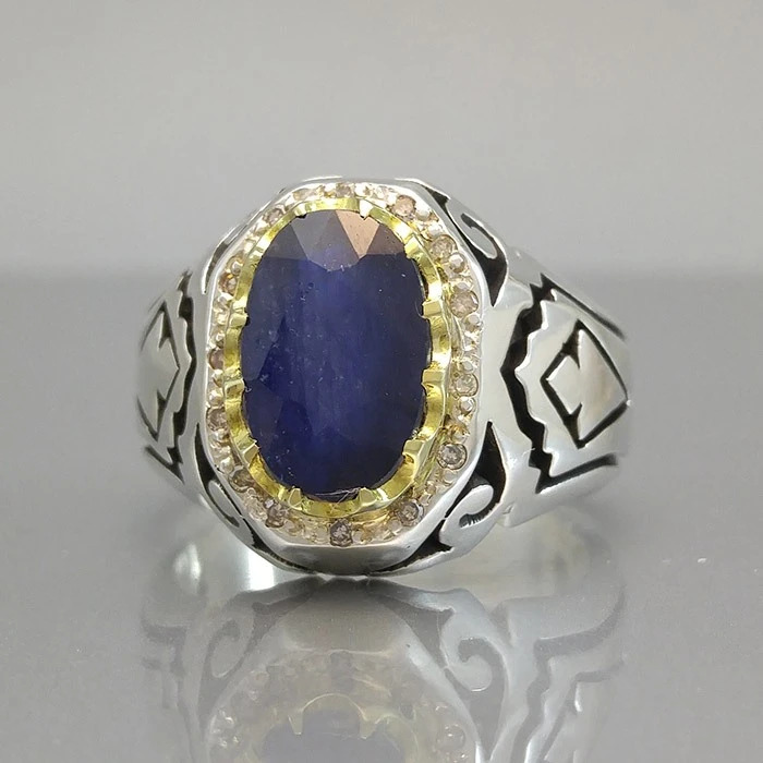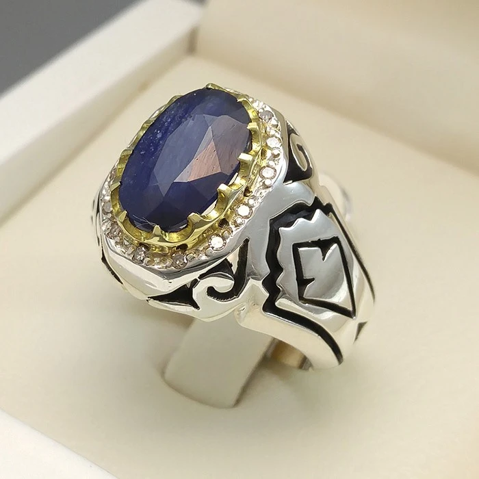 انگشتر نقره مردانه یاقوت کبود کد S2151