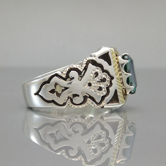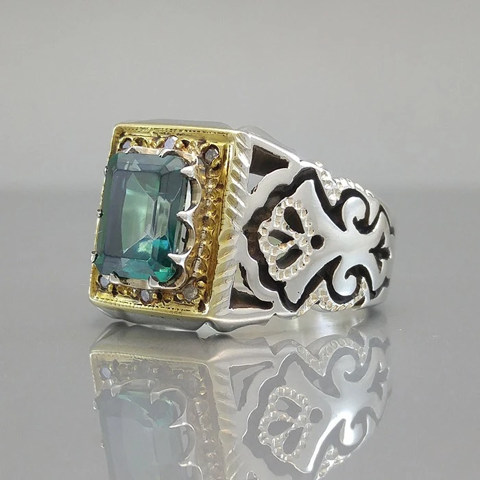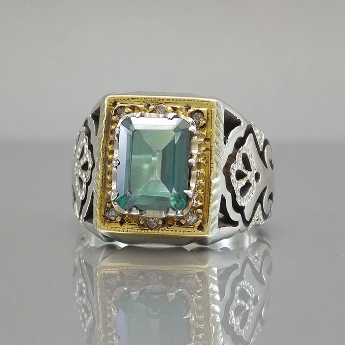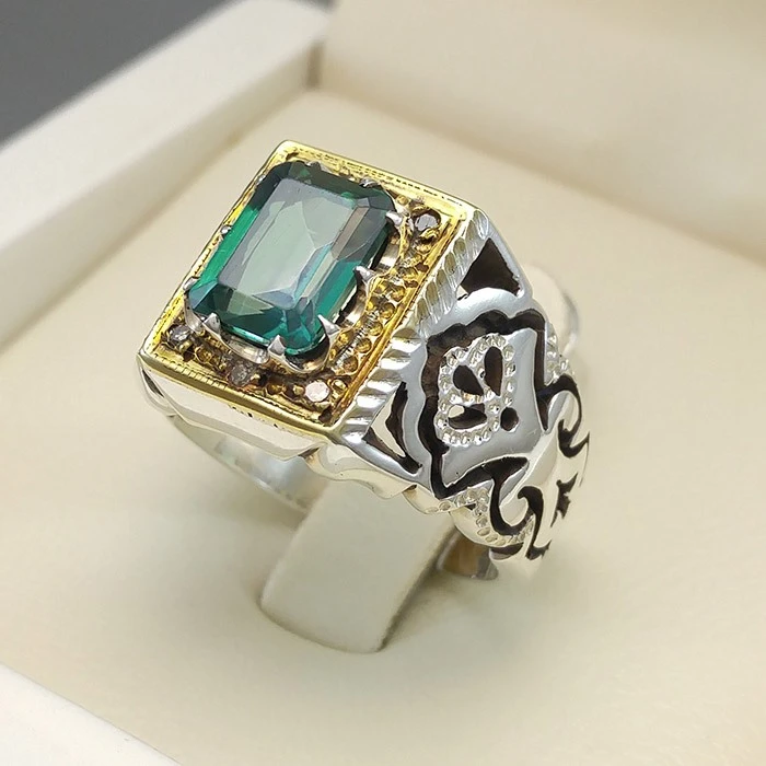 انگشتر نقره مردانه توپاز سبز کد S2152