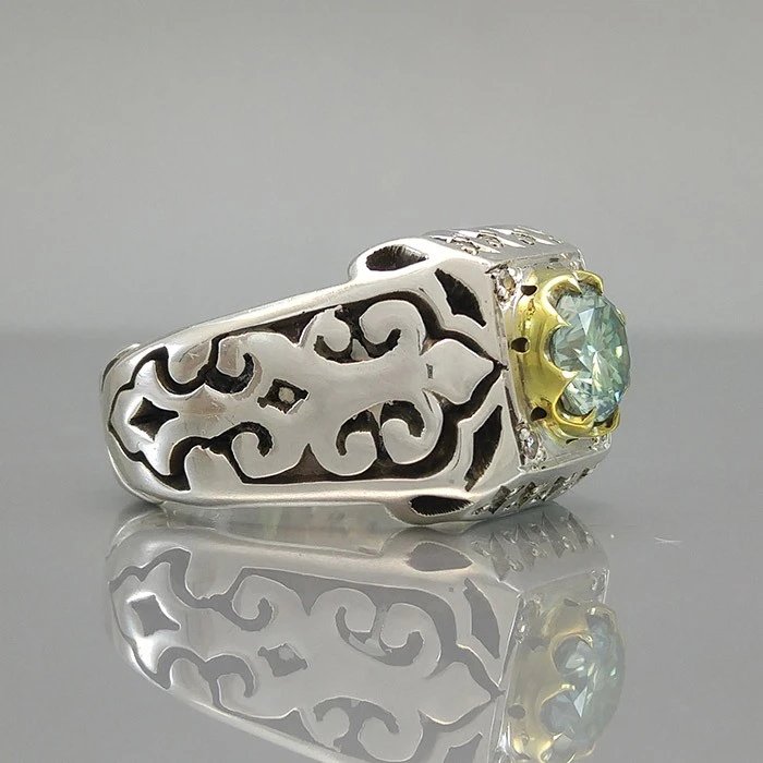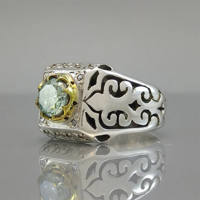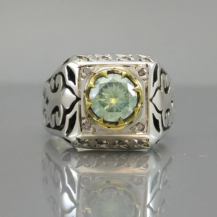 انگشتر نقره مردانه موزنایت (الماس روسی) کد S2153