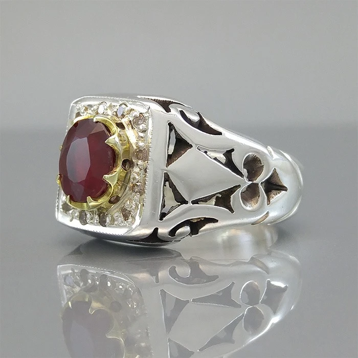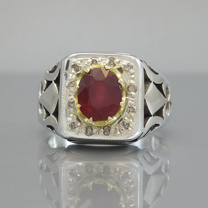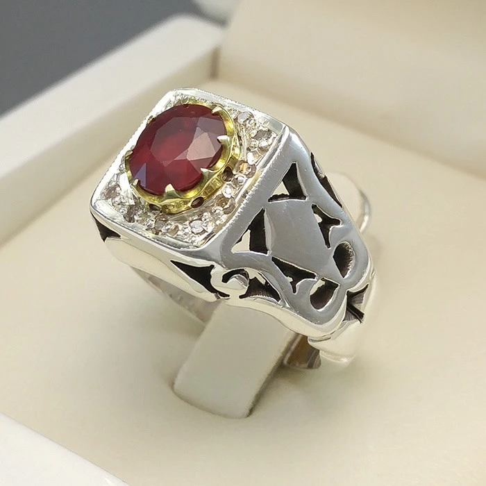 انگشتر نقره مردانه یاقوت سرخ کد S108319