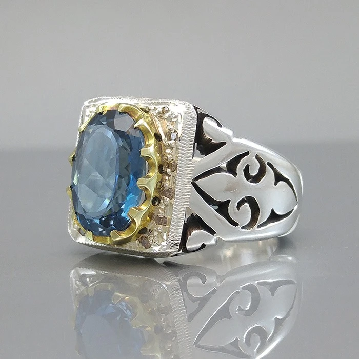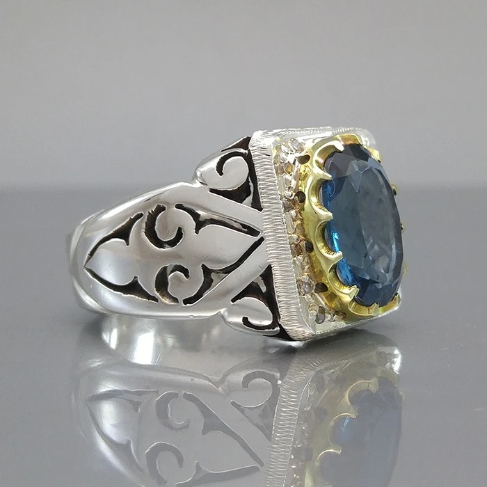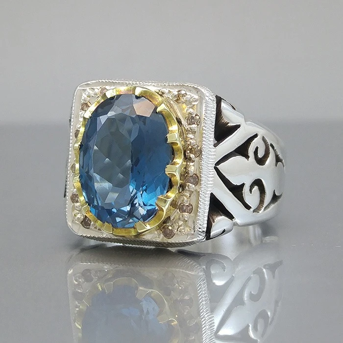 انگشتر نقره مردانه توپاز لندنی کد S108236