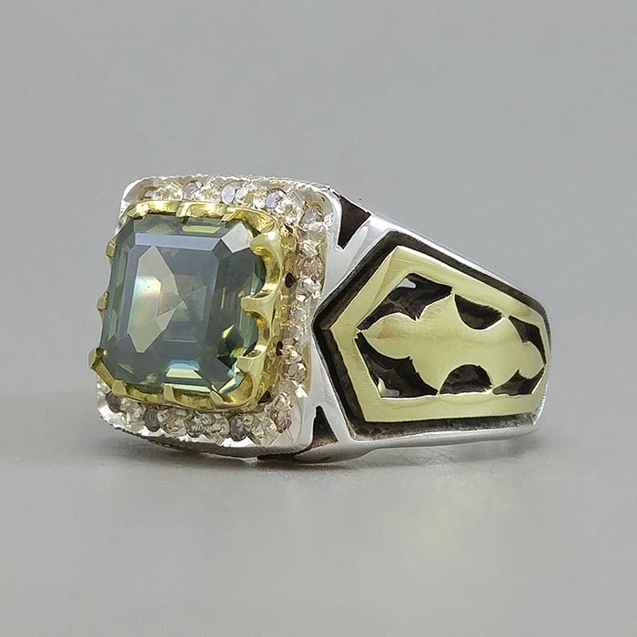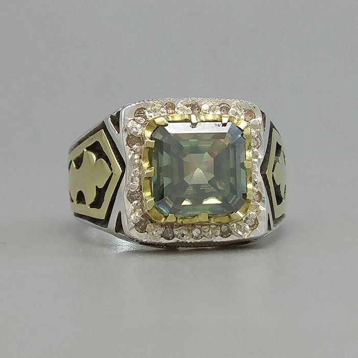 انگشتر نقره مردانه موزنایت (الماس روسی) کد S109798