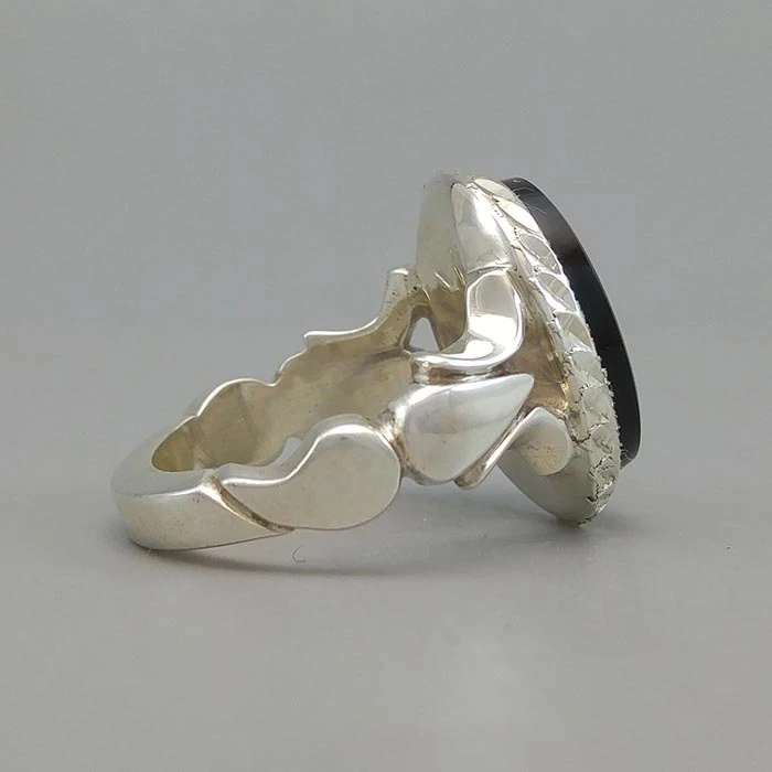 انگشتر نقره مردانه عقیق یمنی مشکی خطی کد S2156