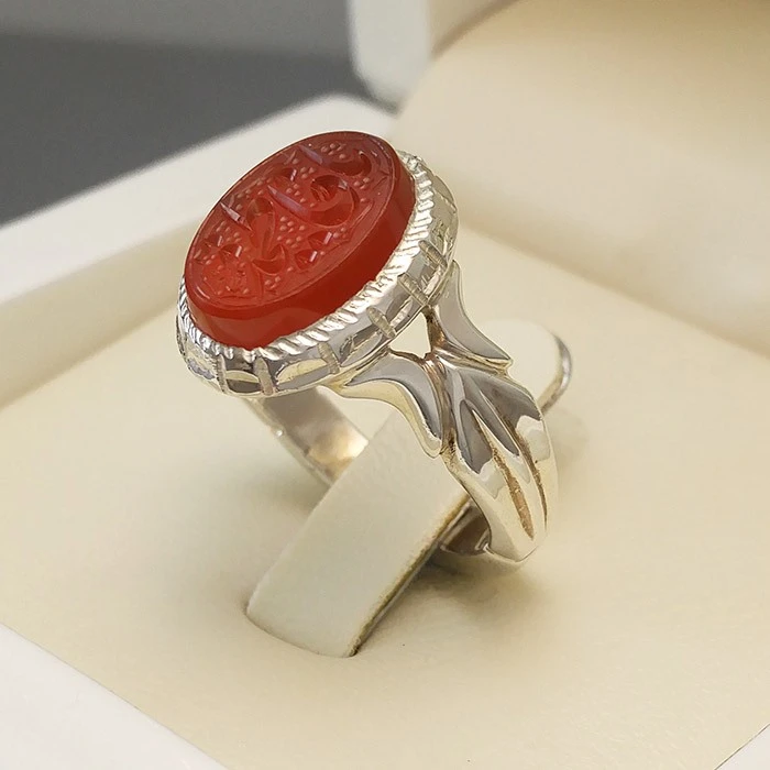انگشتر نقره مردانه عقیق یمنی سرخ خطی کد S108637