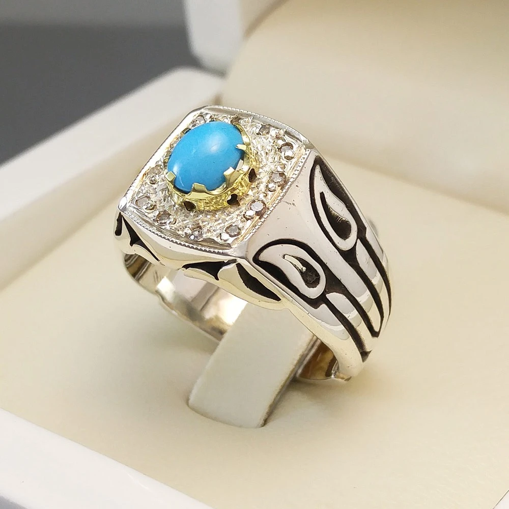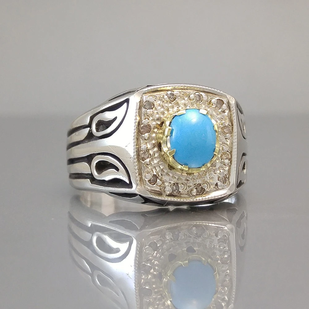 انگشتر نقره مردانه فیروزه نیشابور کد S2168
