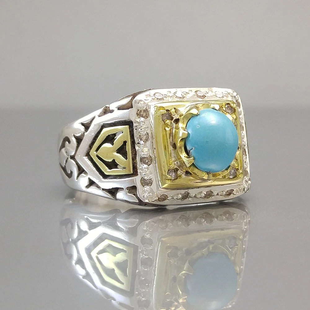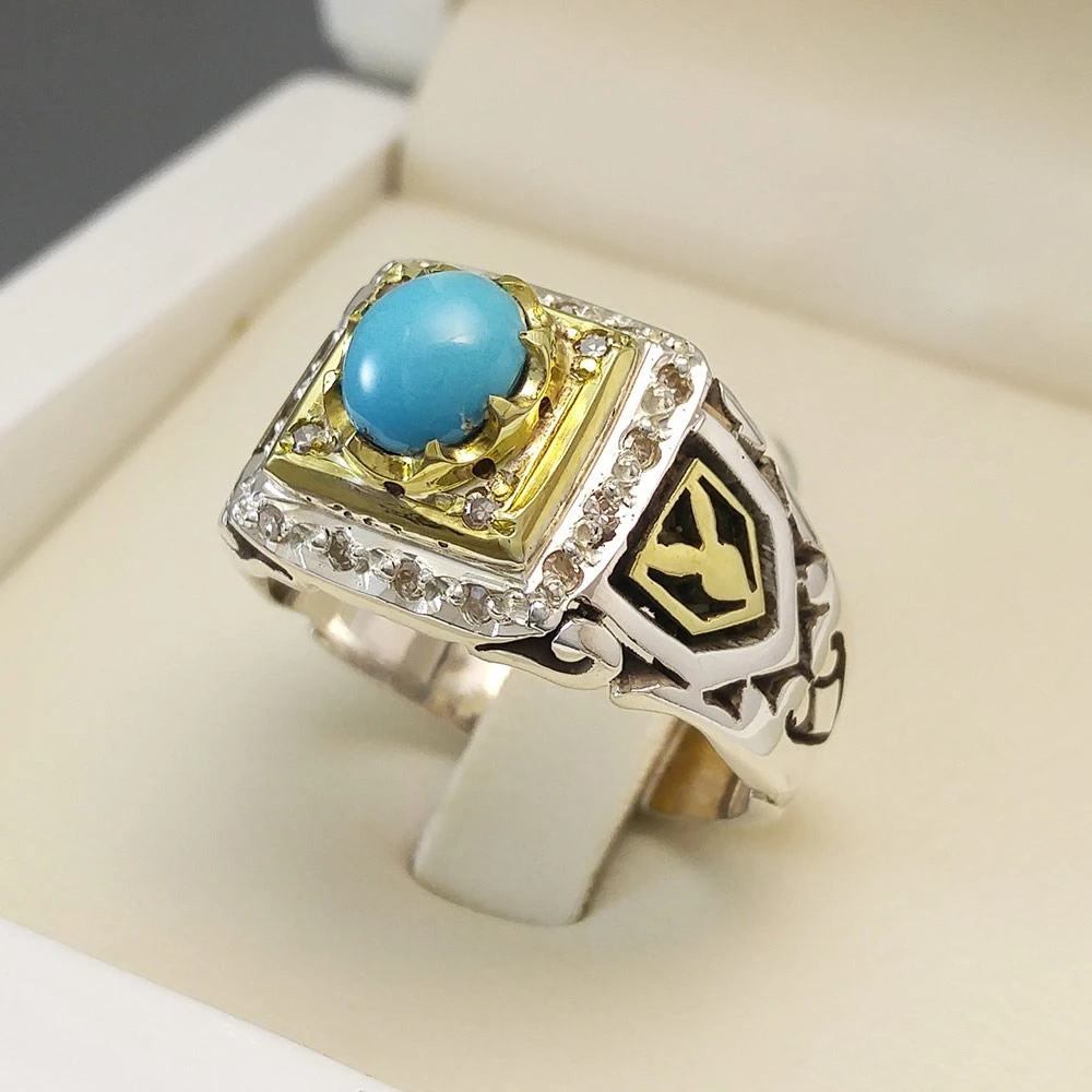 انگشتر نقره مردانه فیروزه نیشابور کد S2169