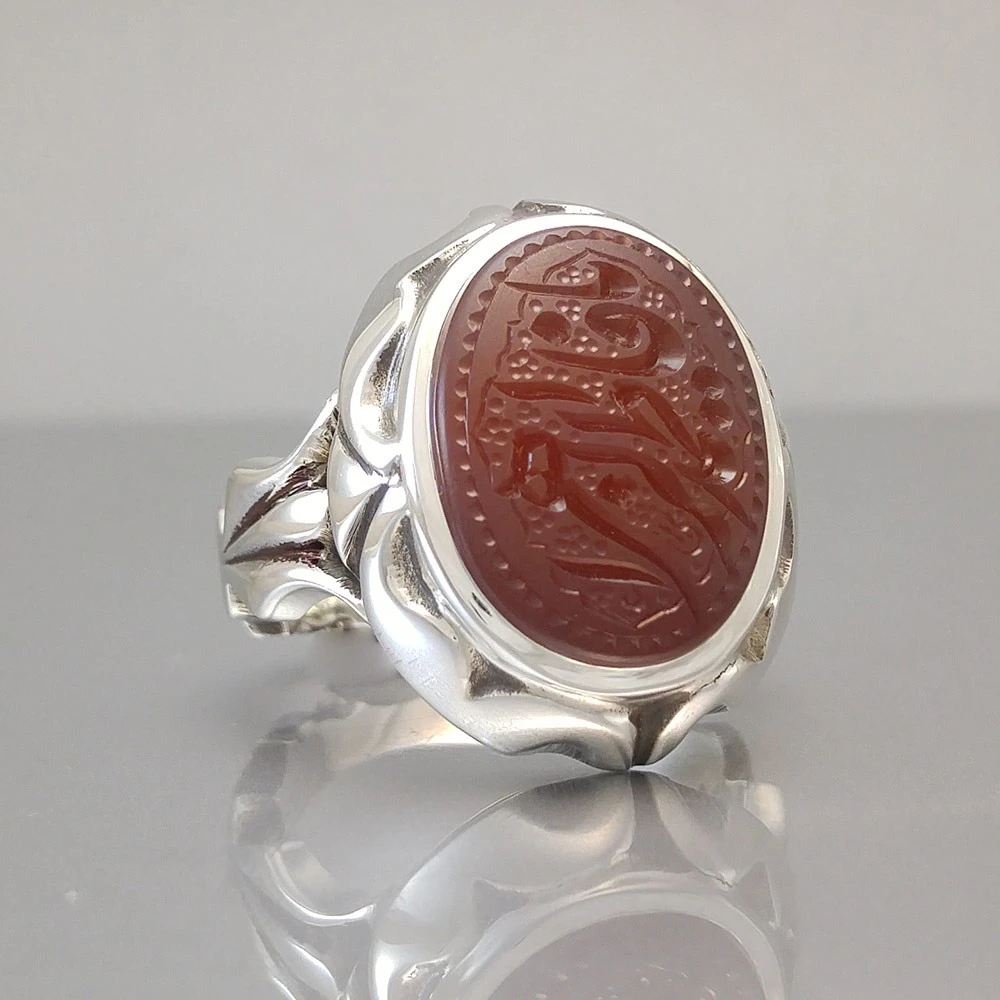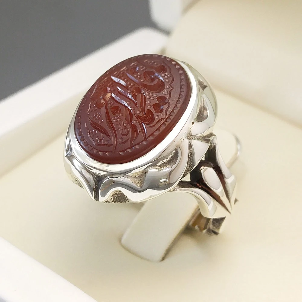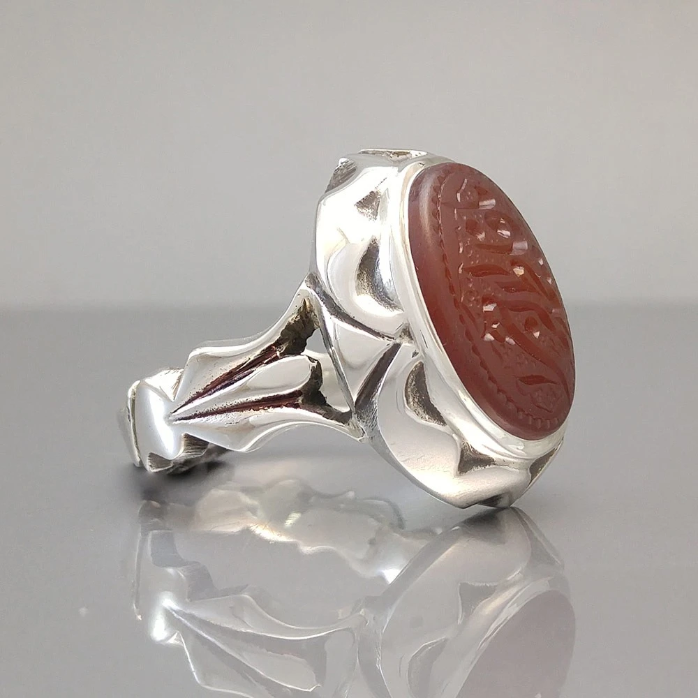انگشتر نقره مردانه عقیق یمنی خطی کد S2175