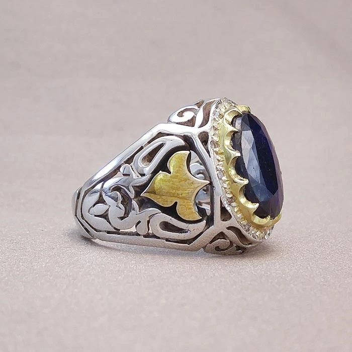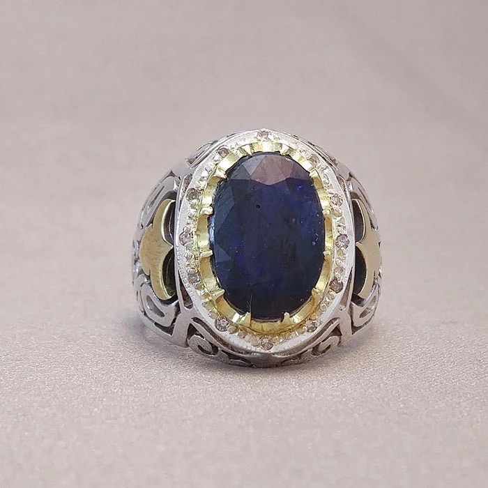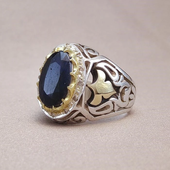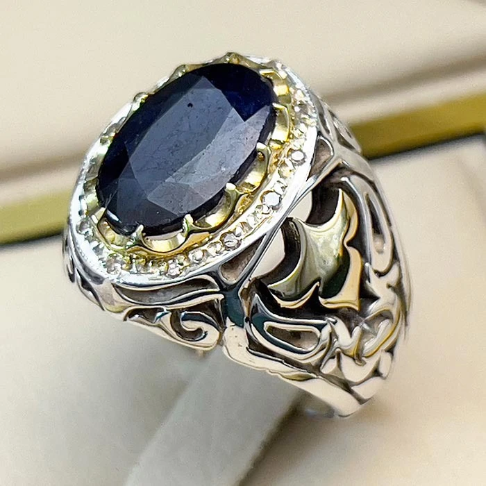انگشتر نقره مردانه یاقوت کبود آفریقایی کد S2206