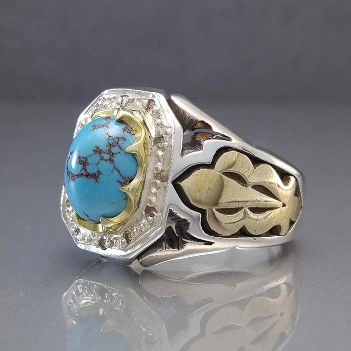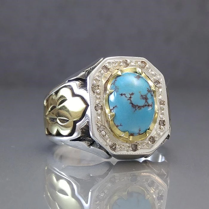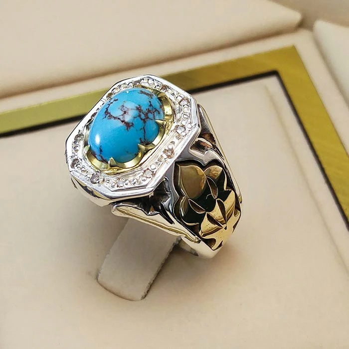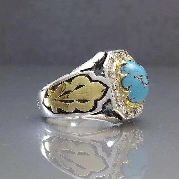 انگشتر نقره مردانه فیروزه نیشابور کد S2211