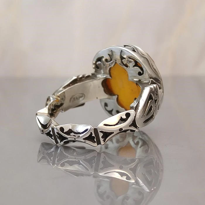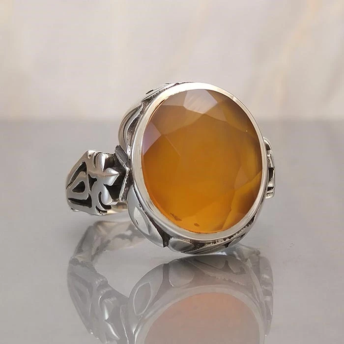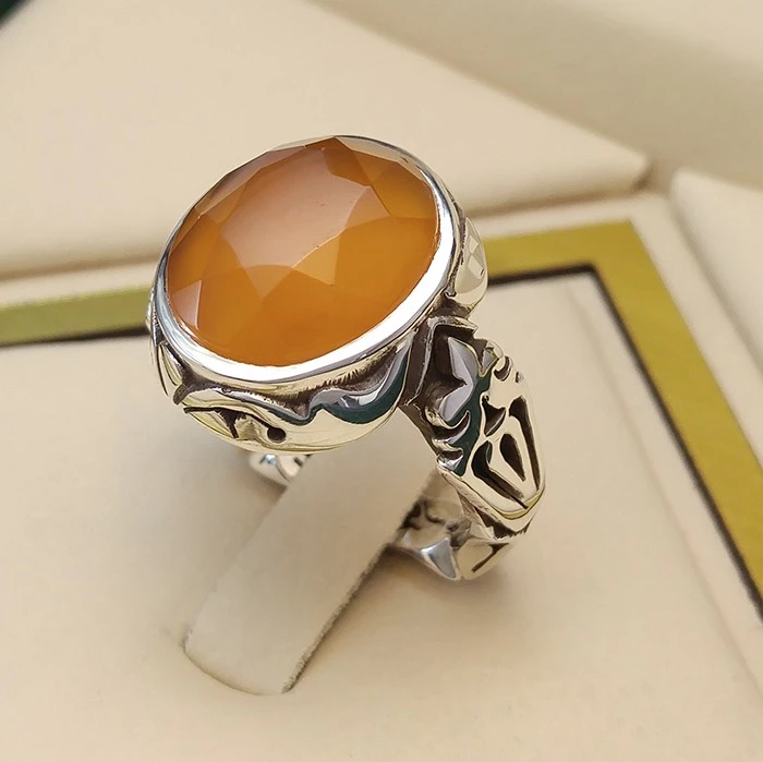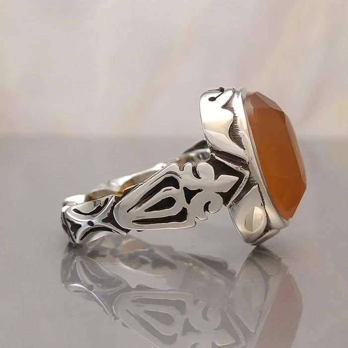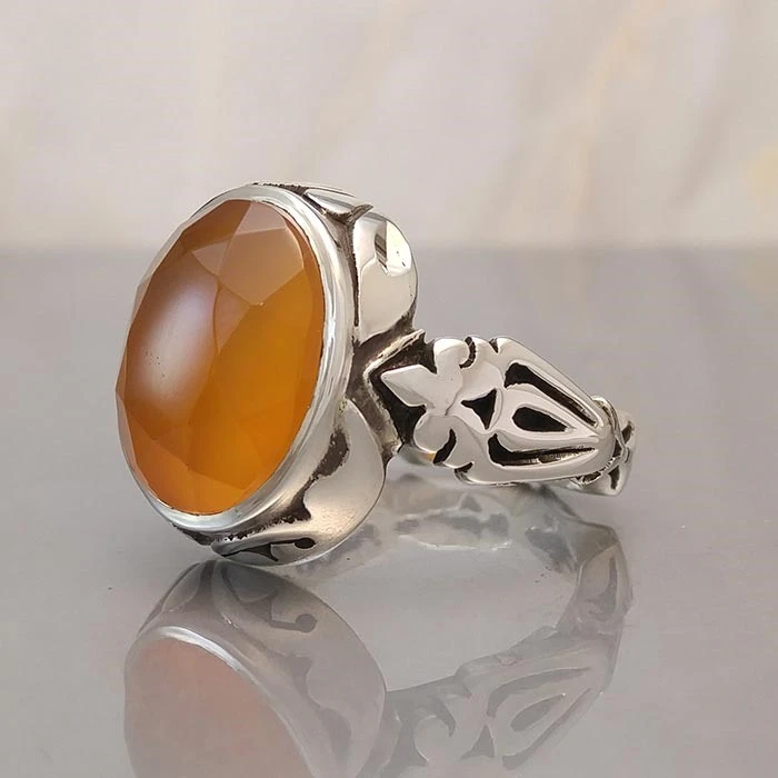 انگشتر نقره مردانه عقیق یمنی پرتقالی الما تراش کد S2221