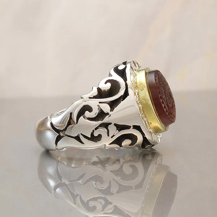 انگشتر نقره مردانه عقیق یمنی سرخ خطی کد S2224