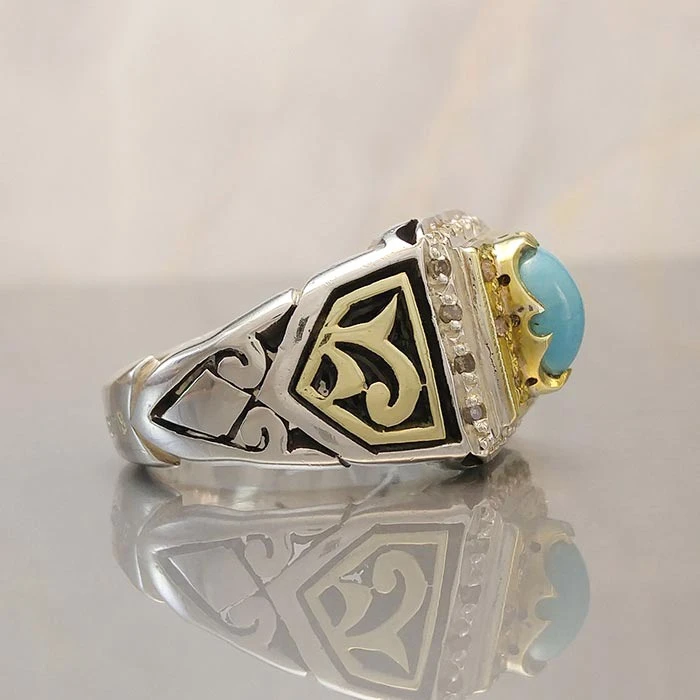 انگشتر نقره مردانه فیروزه نیشابوری کد S2225