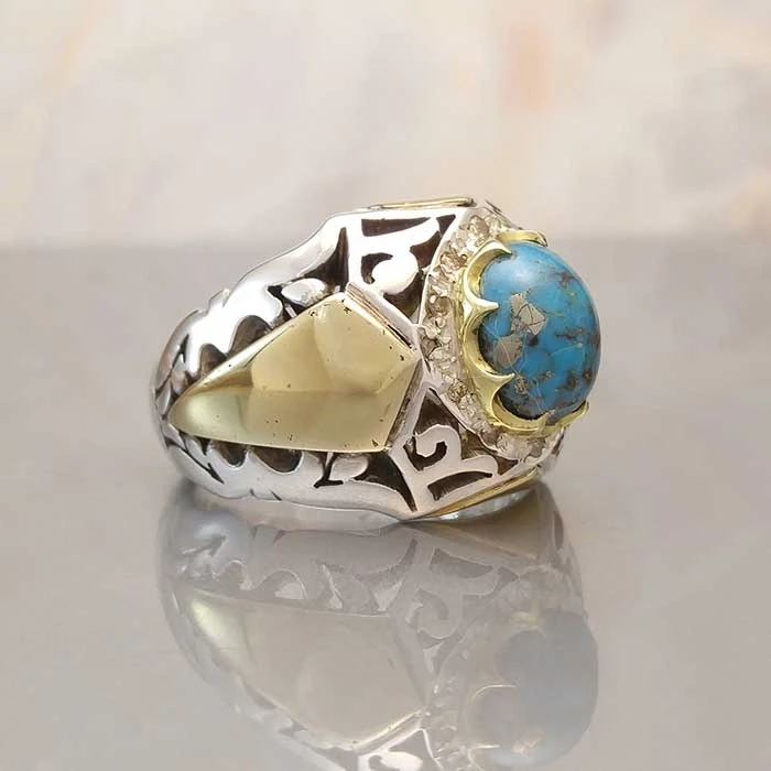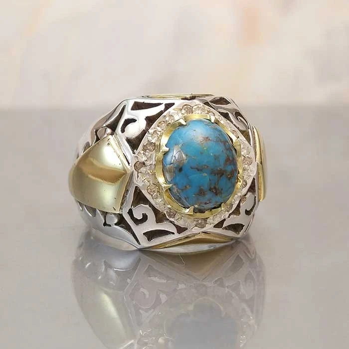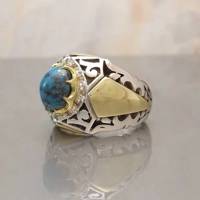انگشتر نقره مردانه فیروزه نیشابور طبیعی کد S2202