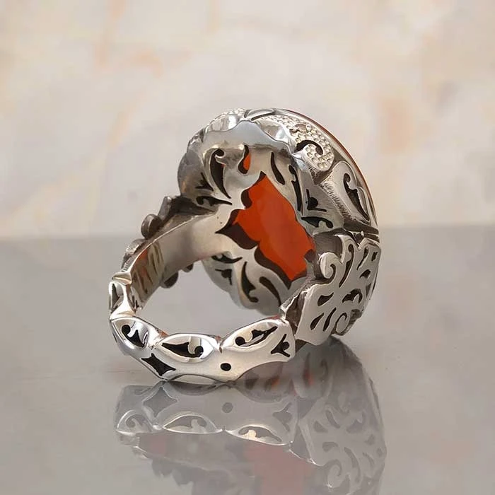 انگشتر نقره مردانه عقیق یمنی خطی کد S2234