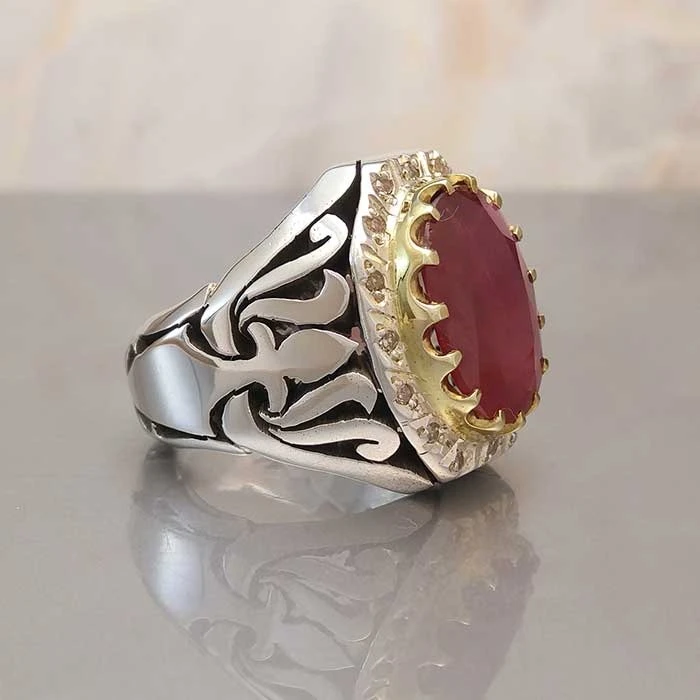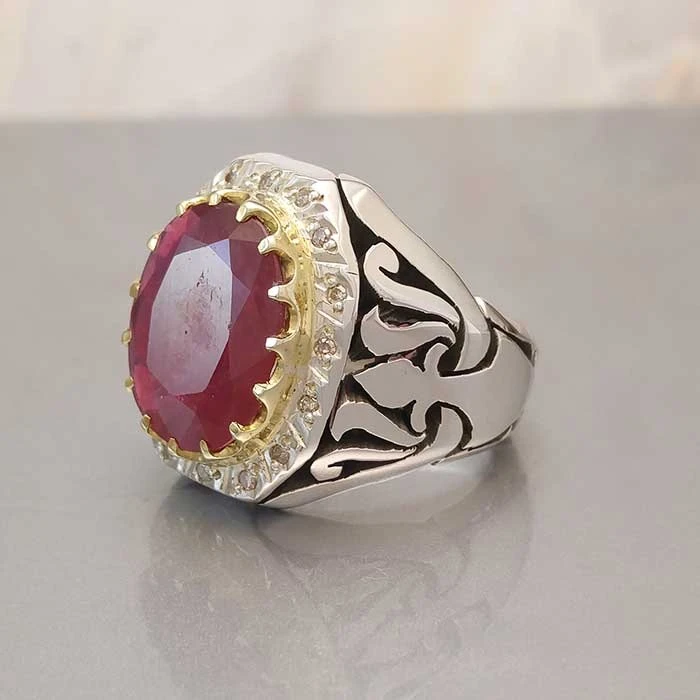 انگشتر نقره مردانه یاقوت سرخ کد S120014