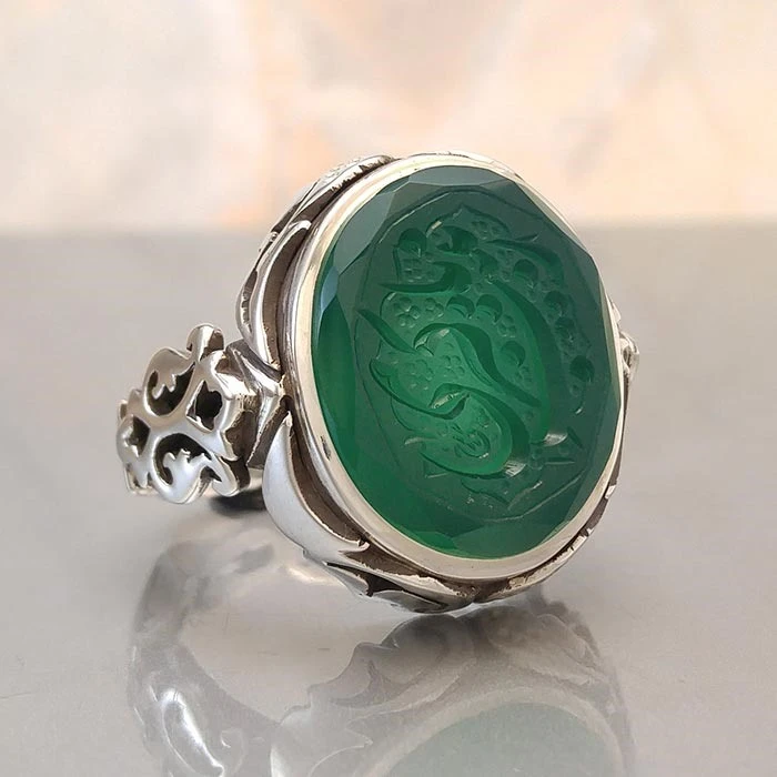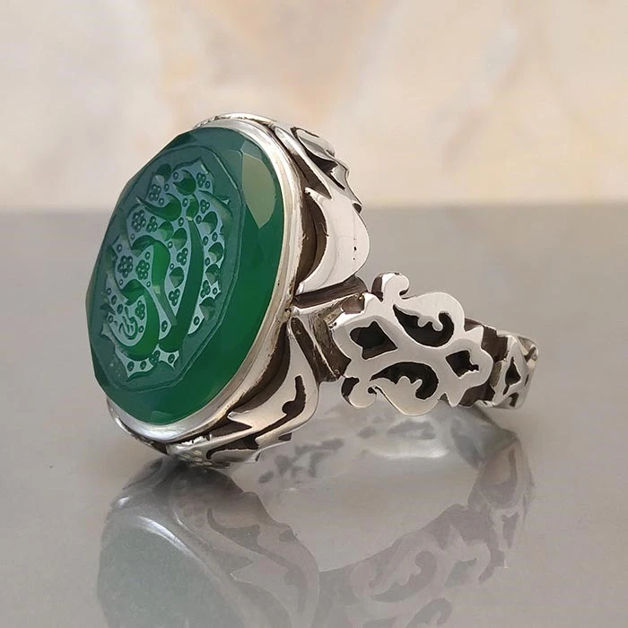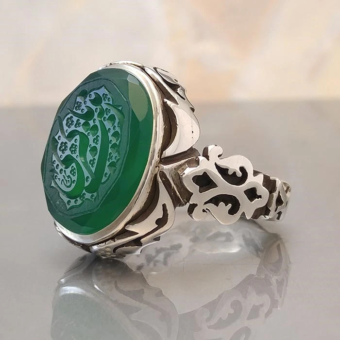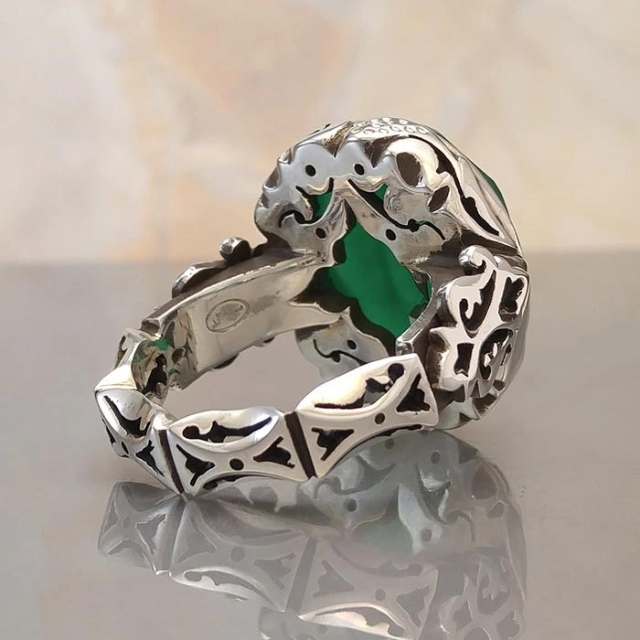 انگشتر نقره مردانه عقیق سبز خطی کد S122497