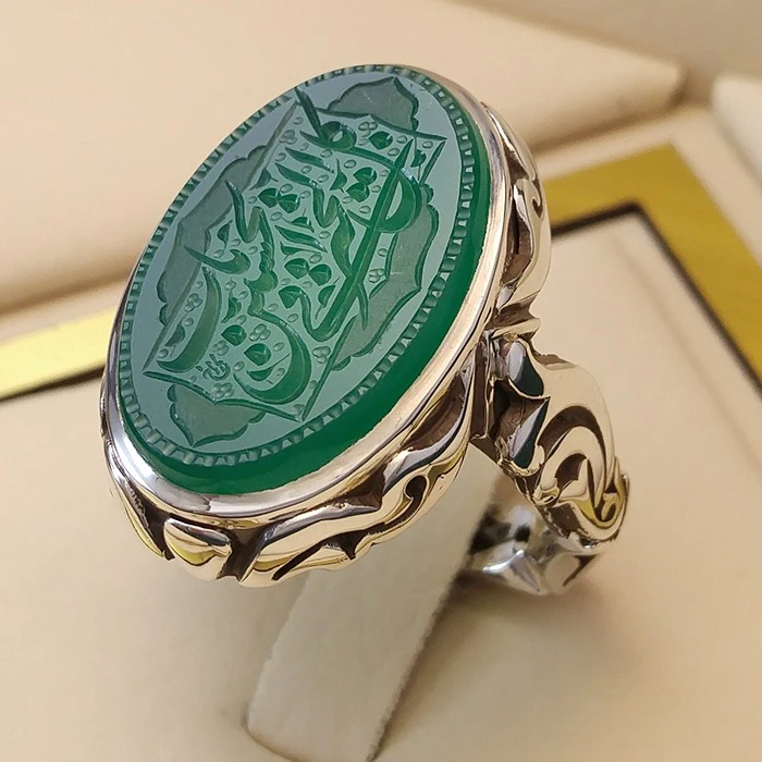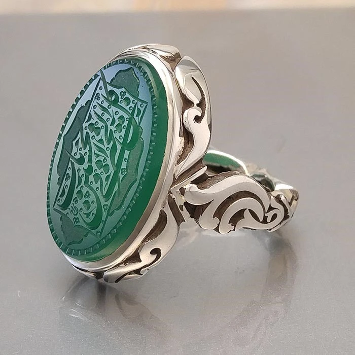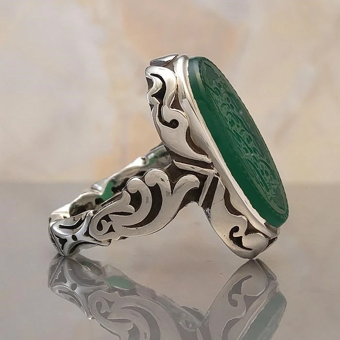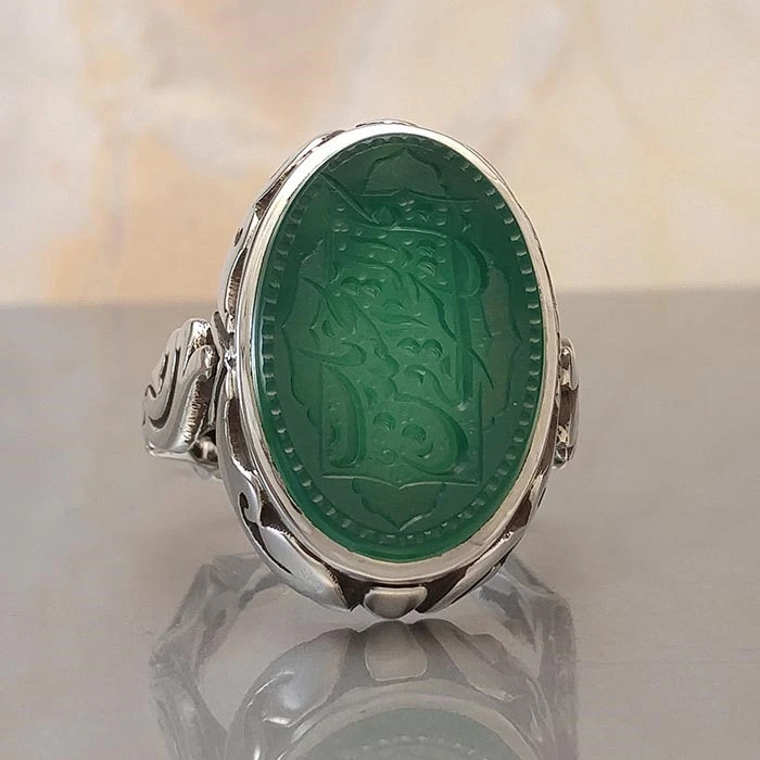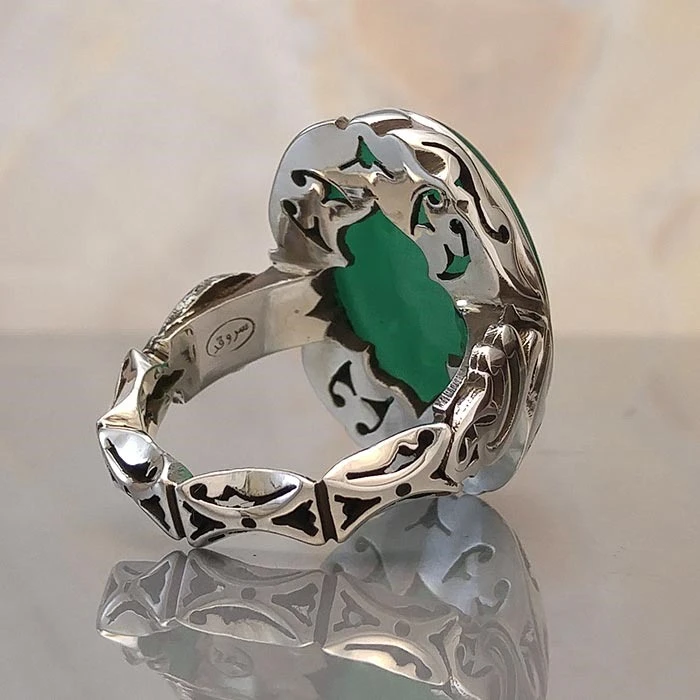 انگشتر نقره مردانه عقیق سبز خطی کد S122508