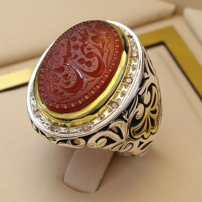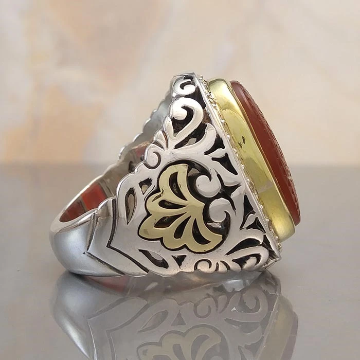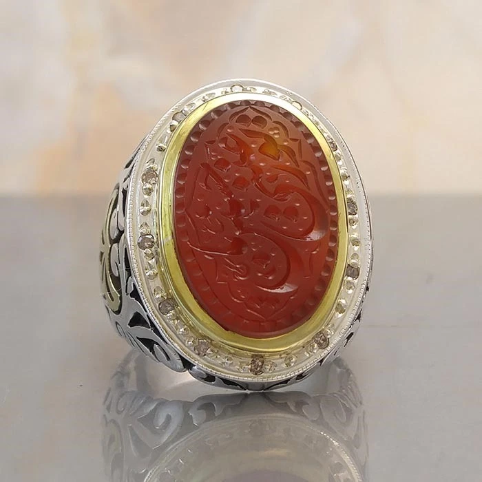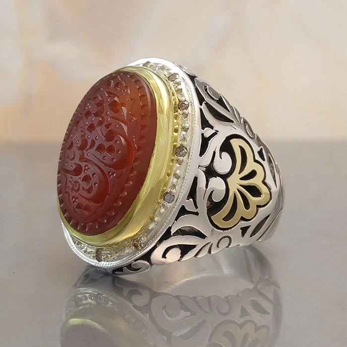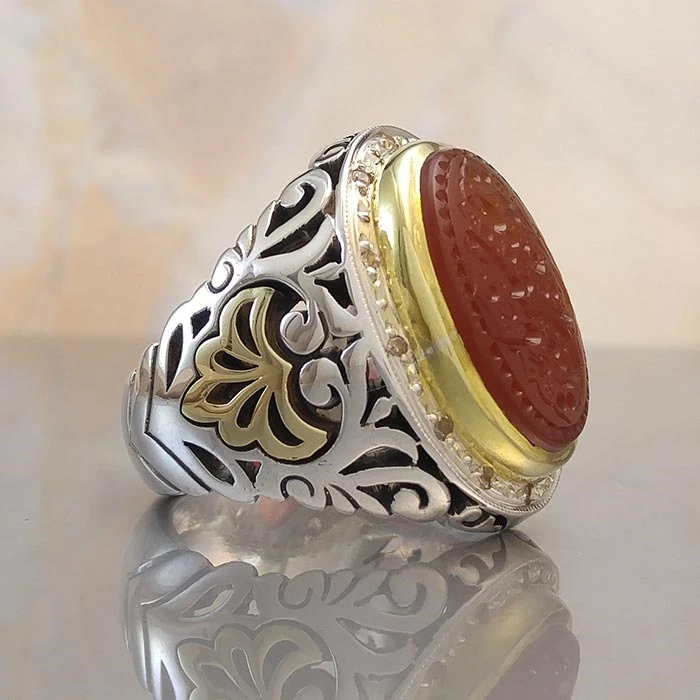 انگشتر نقره مردانه عقیق یمنی سرخ خطی کد S122502