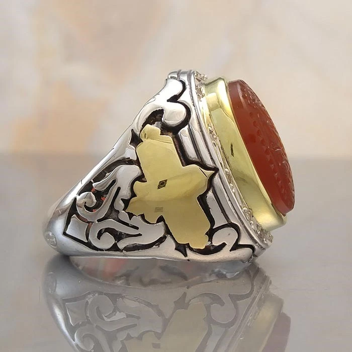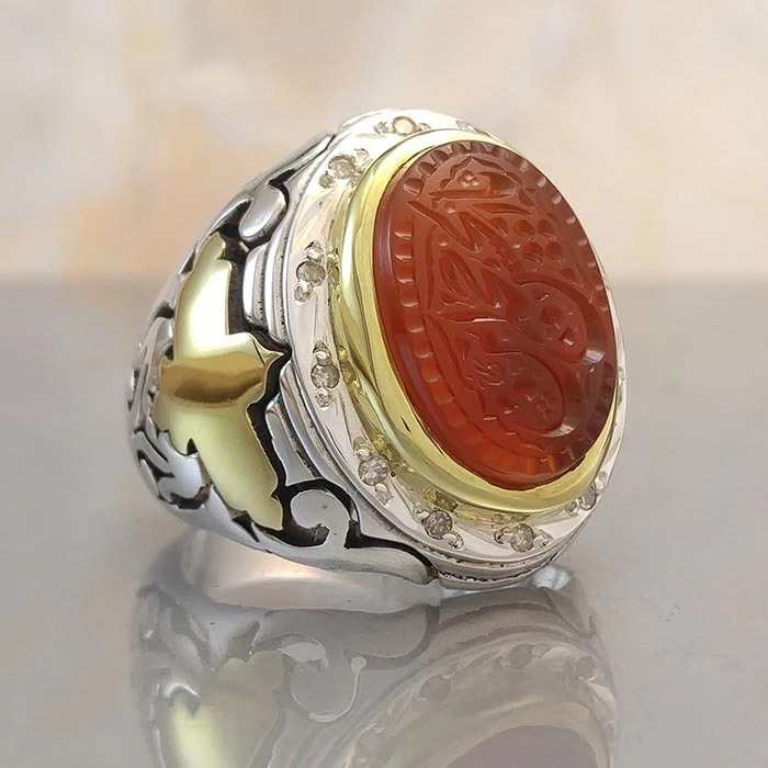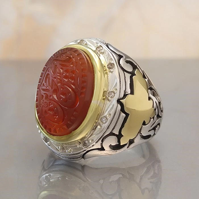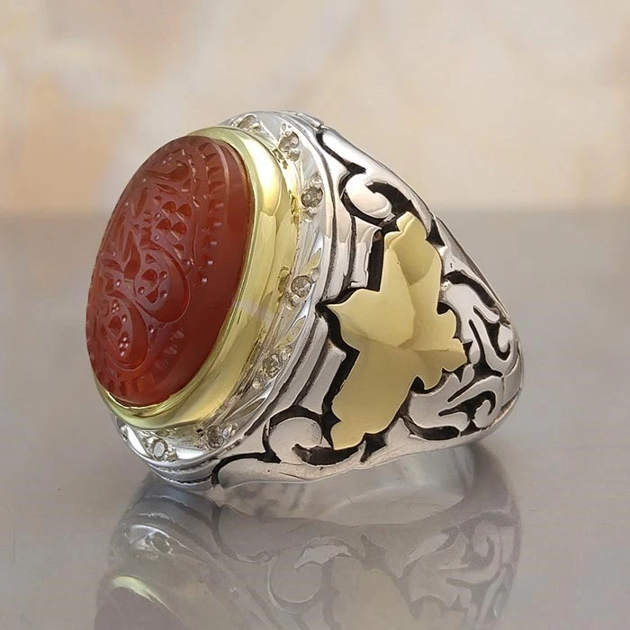 انگشتر نقره مردانه عقیق یمنی سرخ خطی کد S122499