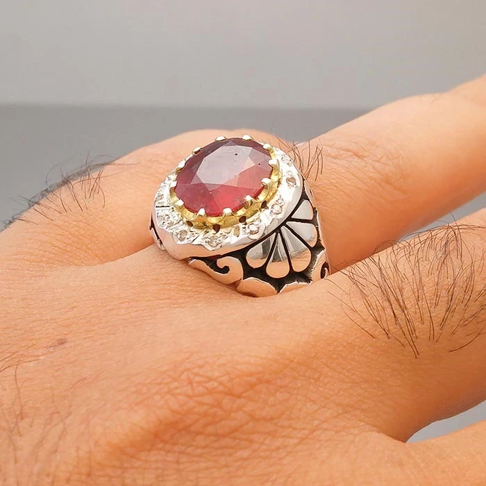 انگشتر نقره مردانه یاقوت سرخ آفریقایی کد S2238