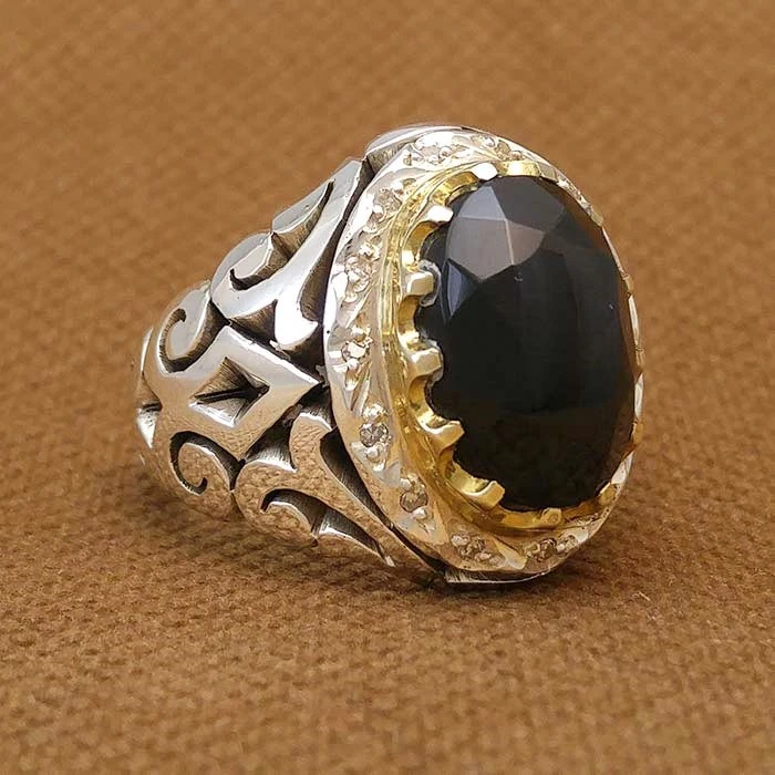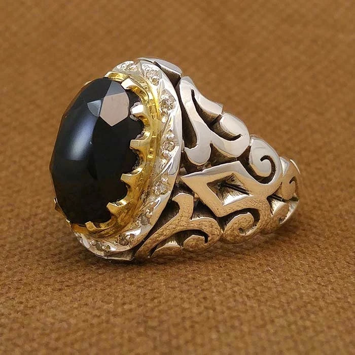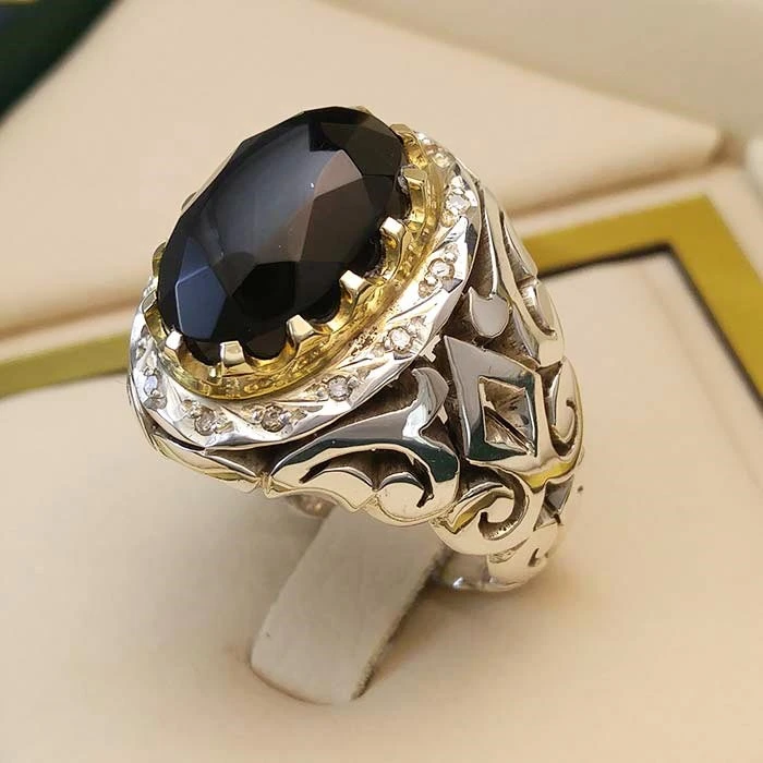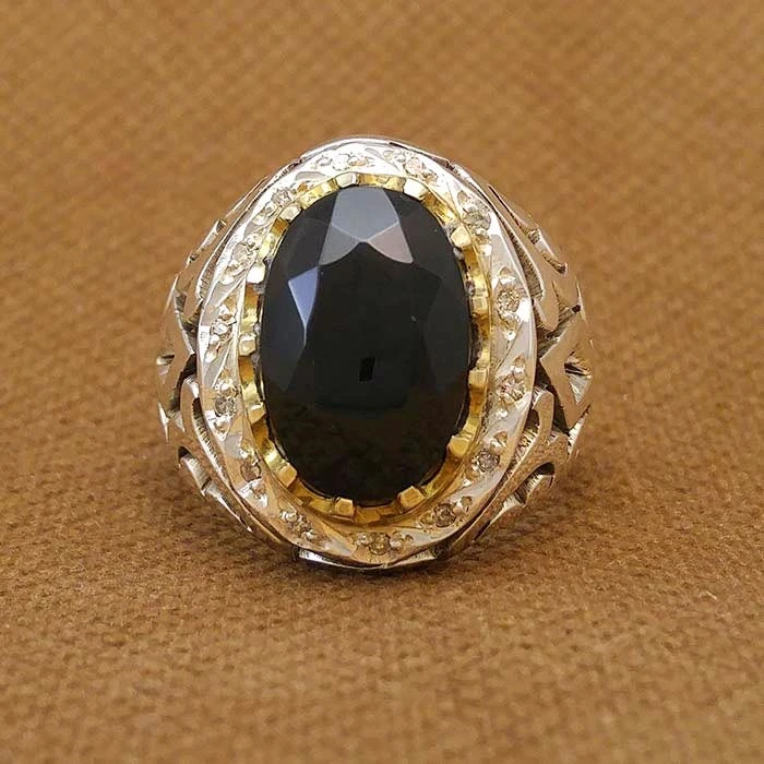 انگشتر نقره مردانه عقیق یمنی مشکی کد S2250