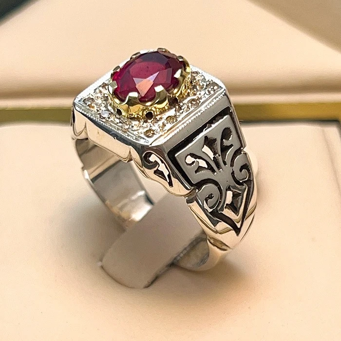 انگشتر نقره مردانه یاقوت سرخ کد S2251