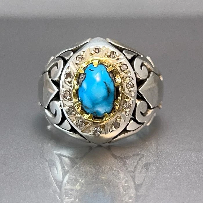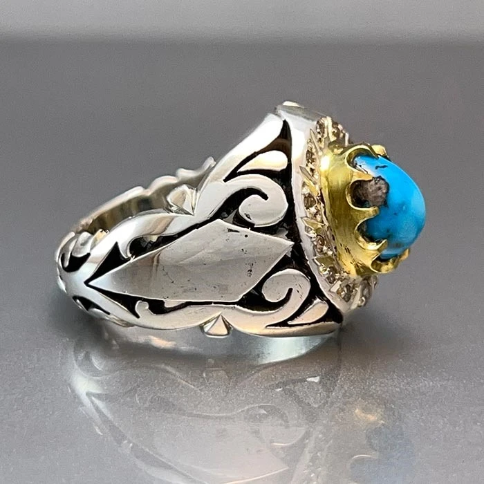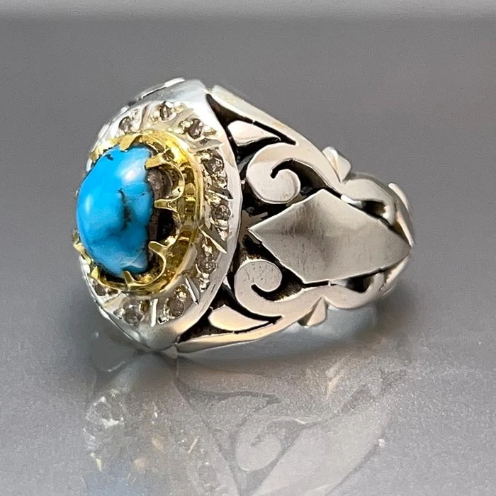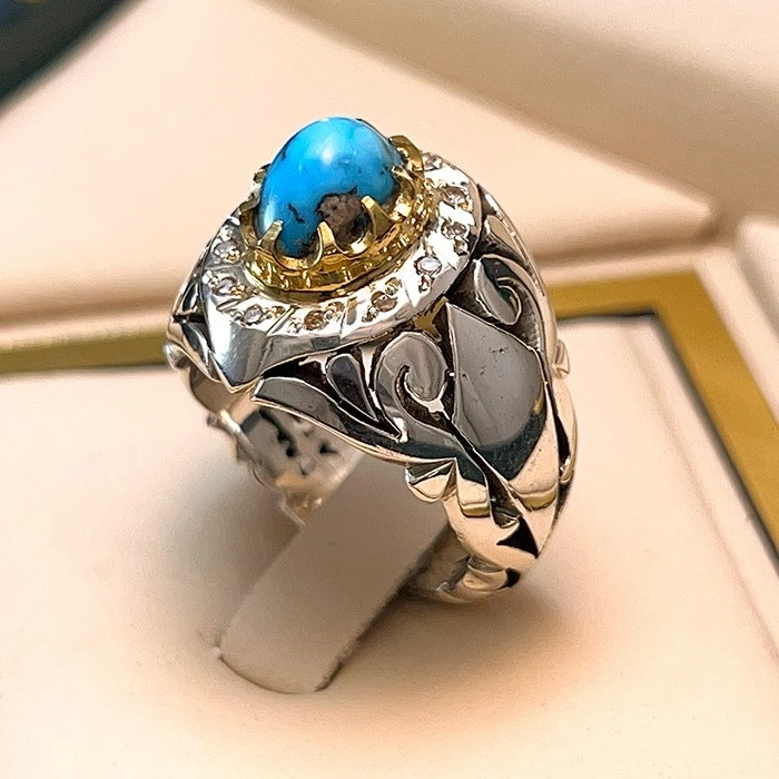 انگشتر نقره مردانه فیروزه نیشابور طبیعی کد S2252