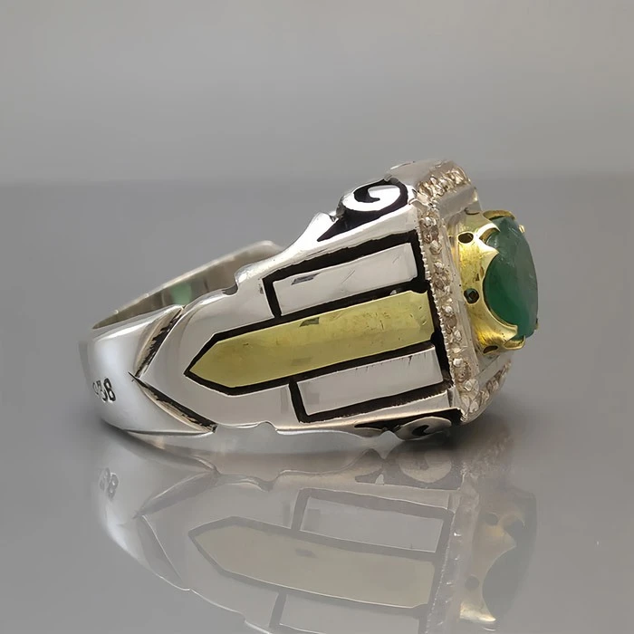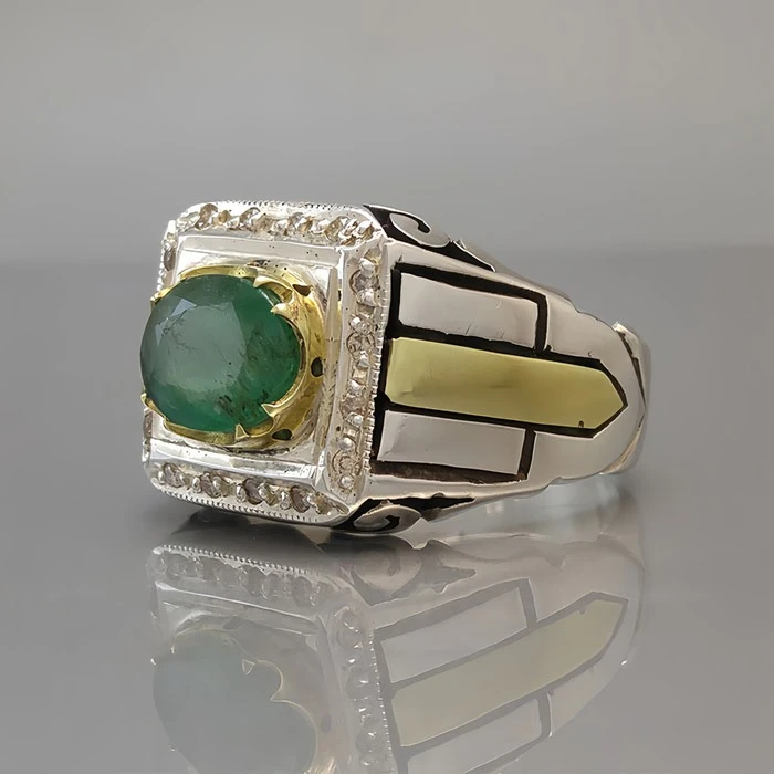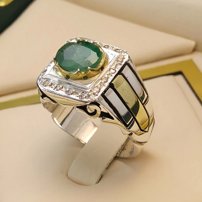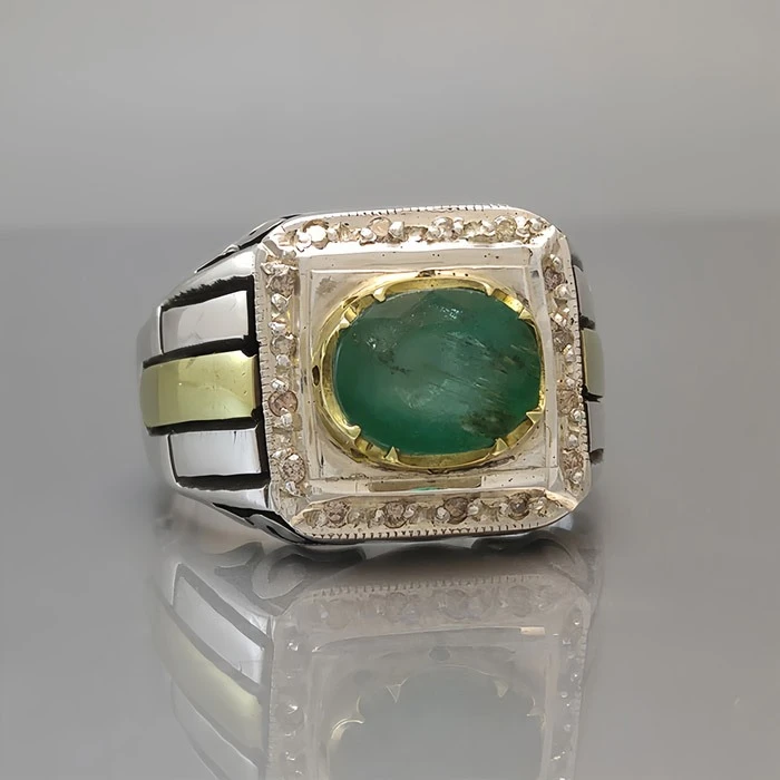 انگشتر نقره مردانه زمرد زامبیا کد S128474