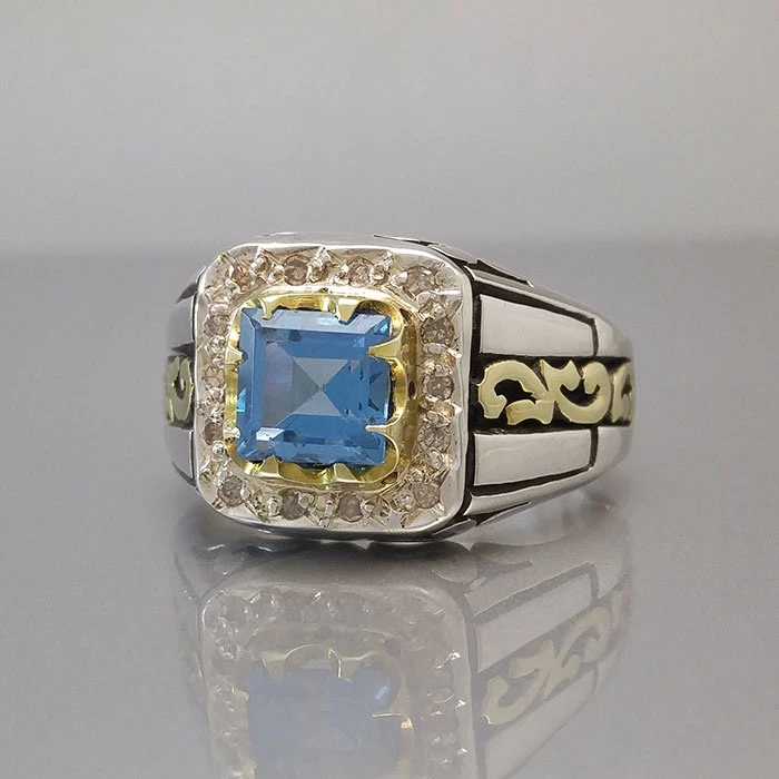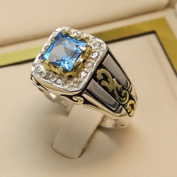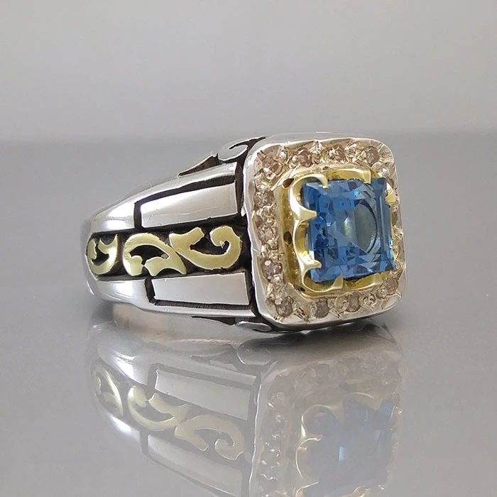انگشتر نقره مردانه توپاز سوئیسی کد S129786