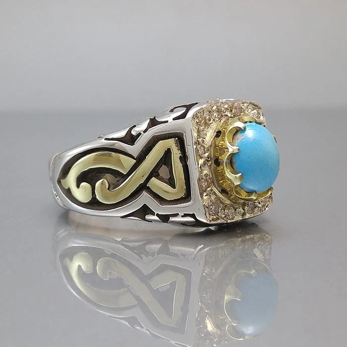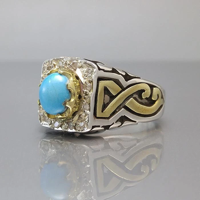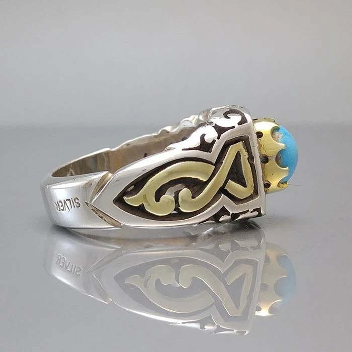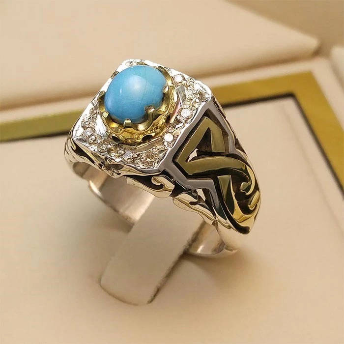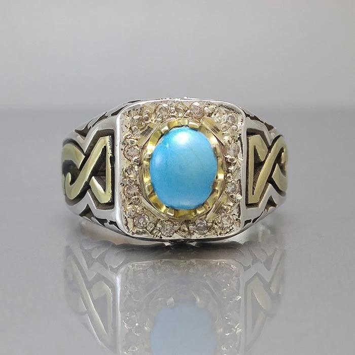 انگشتر نقره مردانه فیروزه نیشابور طبیعی کد S129776