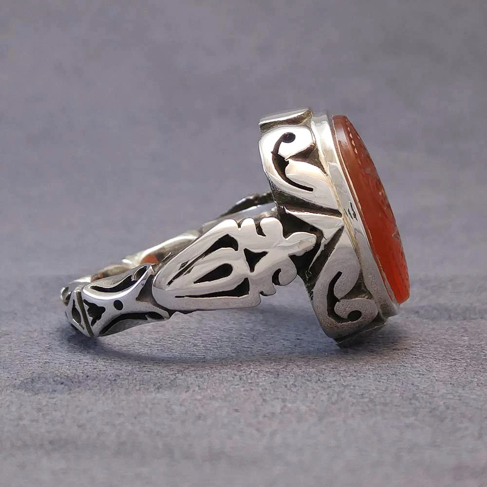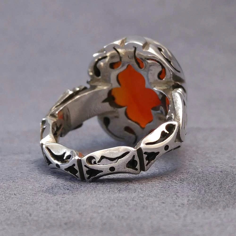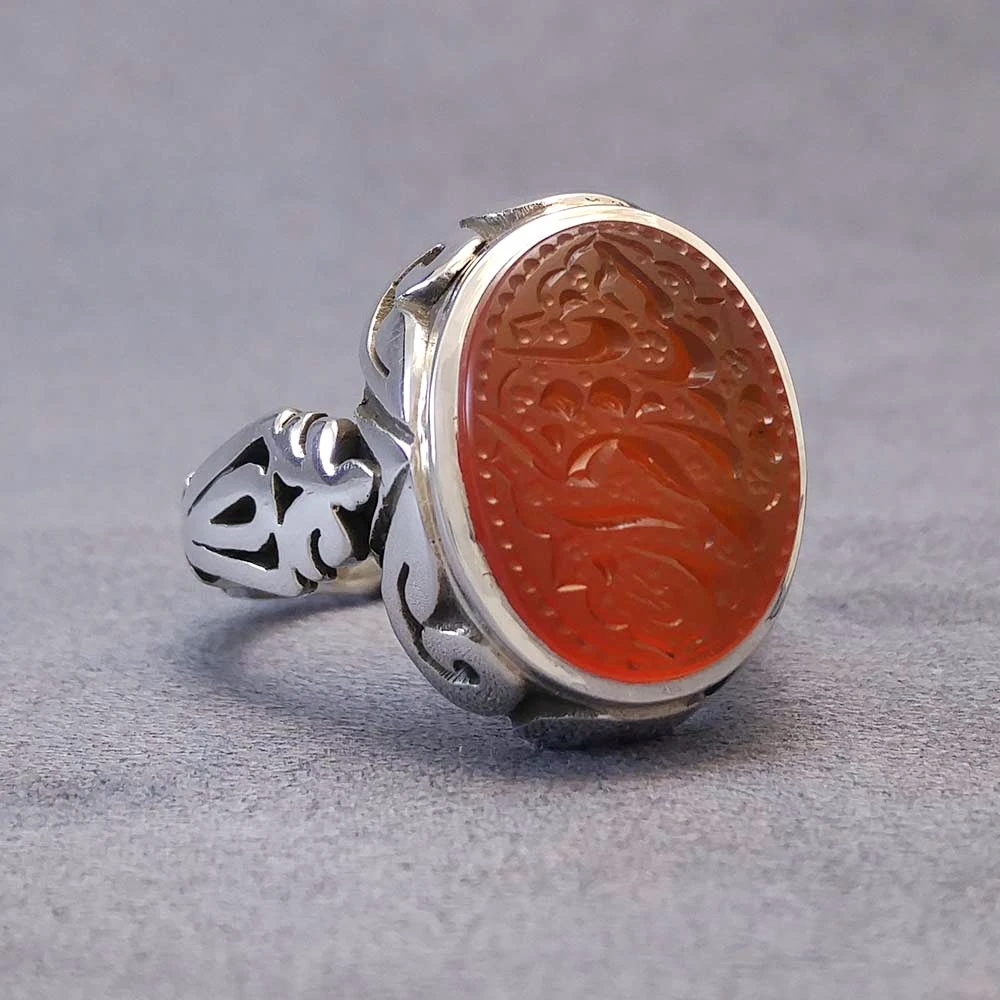 انگشتر نقره مردانه عقیق یمنی سرخ خطی کد S2263