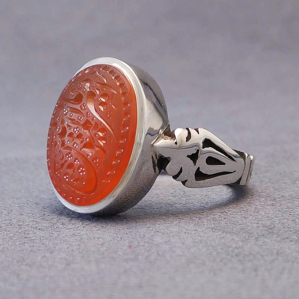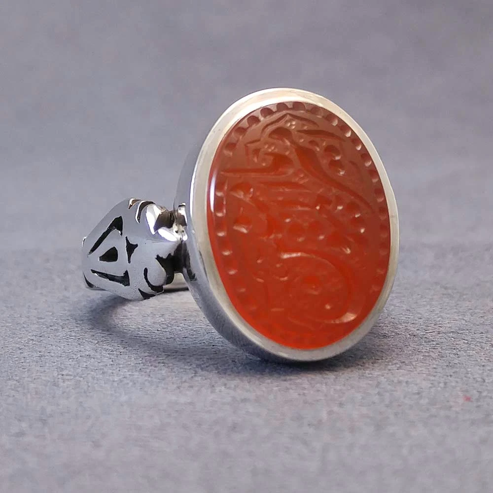 انگشتر نقره مردانه عقیق یمنی سرخ خطی کد S2265