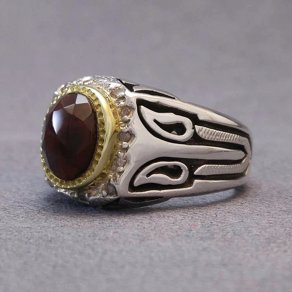 انگشتر نقره مردانه عقیق یمنی سرخ الماس تراش کد S129003
