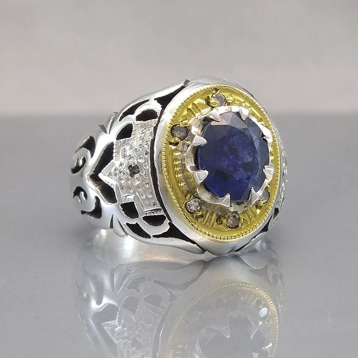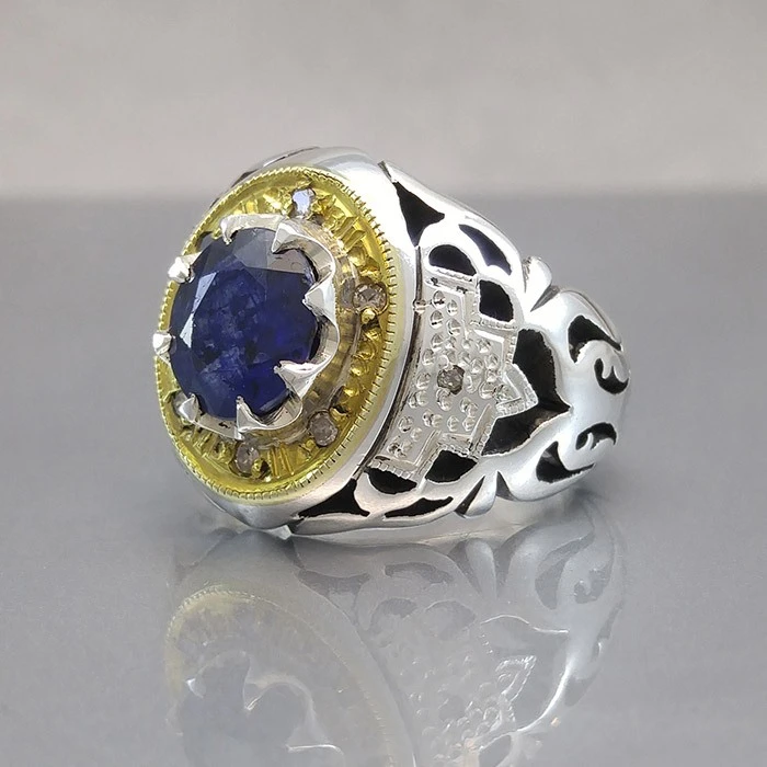 انگشتر نقره مردانه یاقوت کبود کد S133169