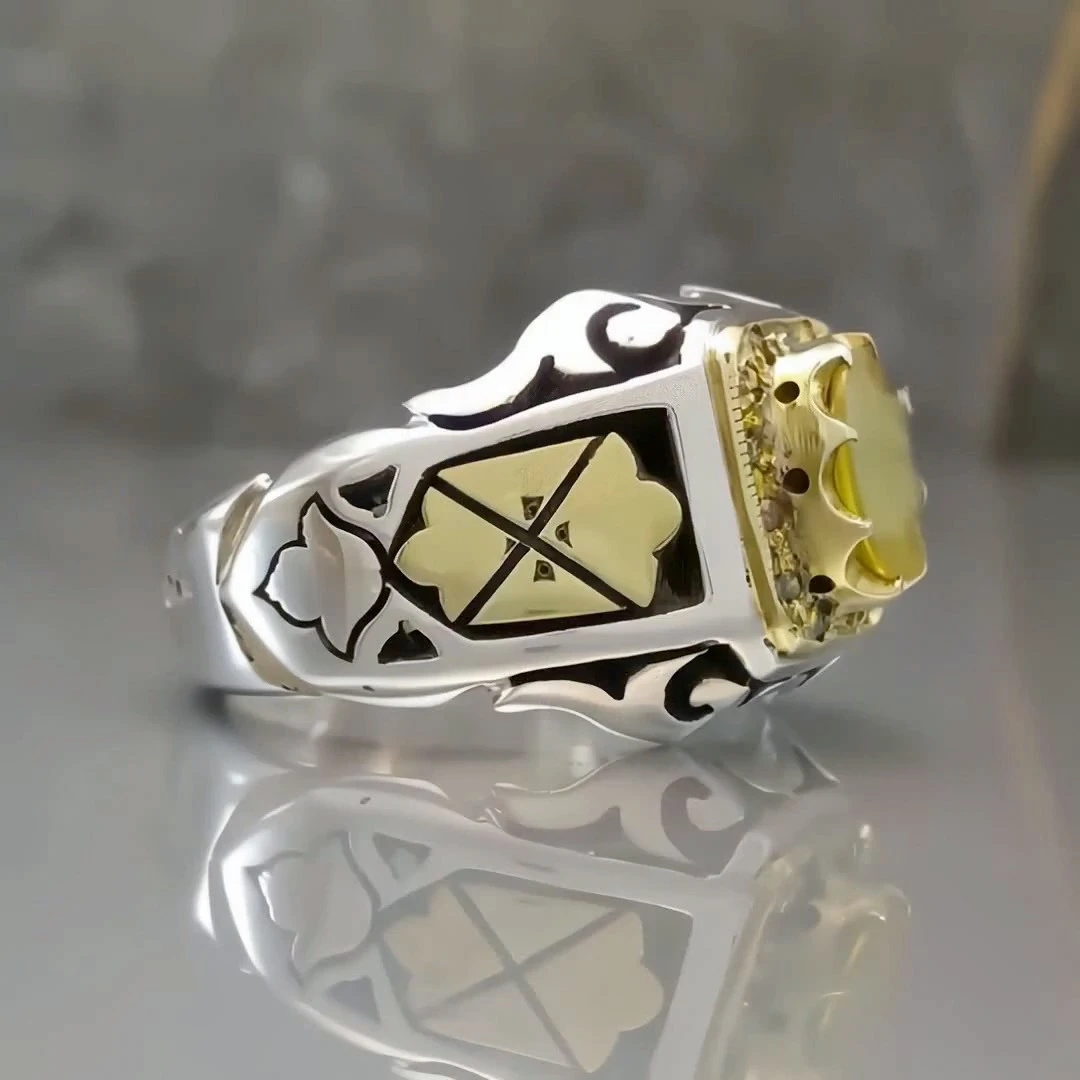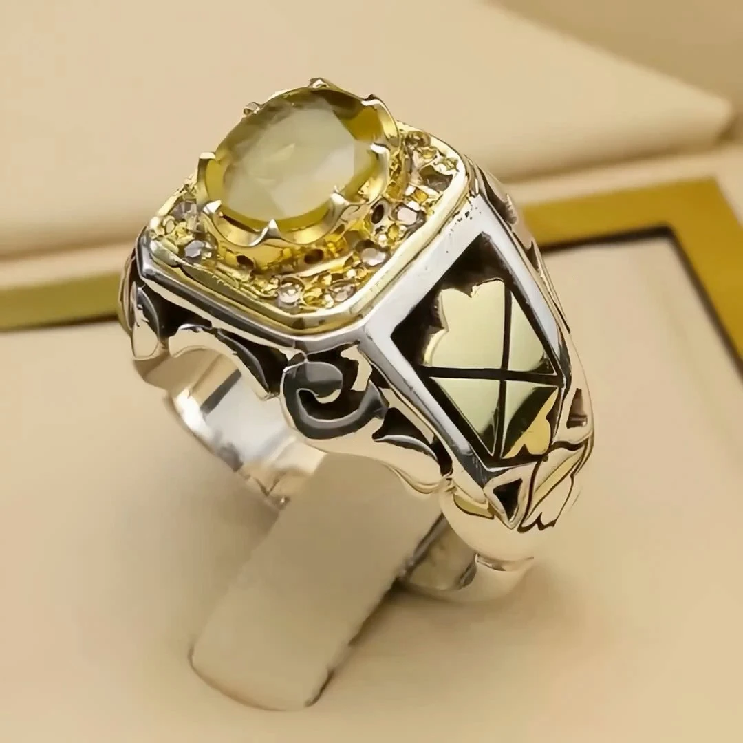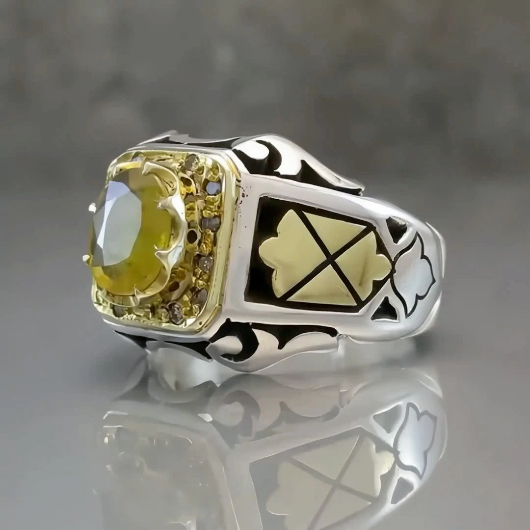 انگشتر نقره مردانه یاقوت زرد معدنی کد S133154