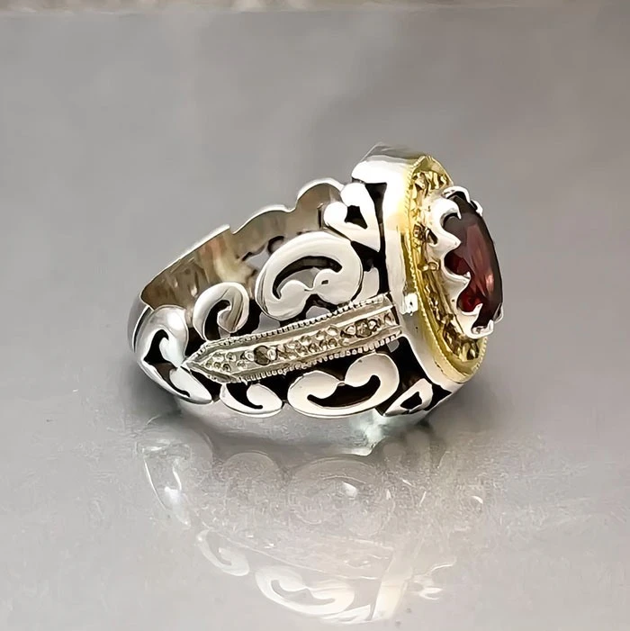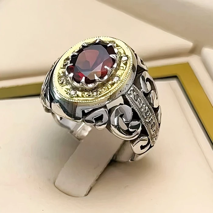 انگشتر نقره مردانه گارنت کد S133170