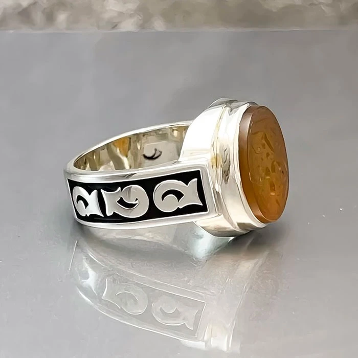انگشتر نقره مردانه عقیق یمنی پرتقالی خطی کد S133175