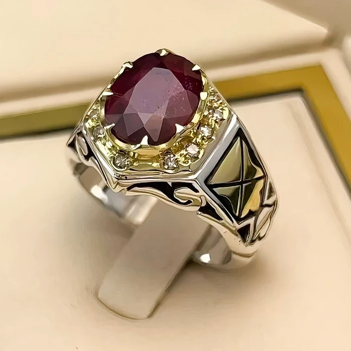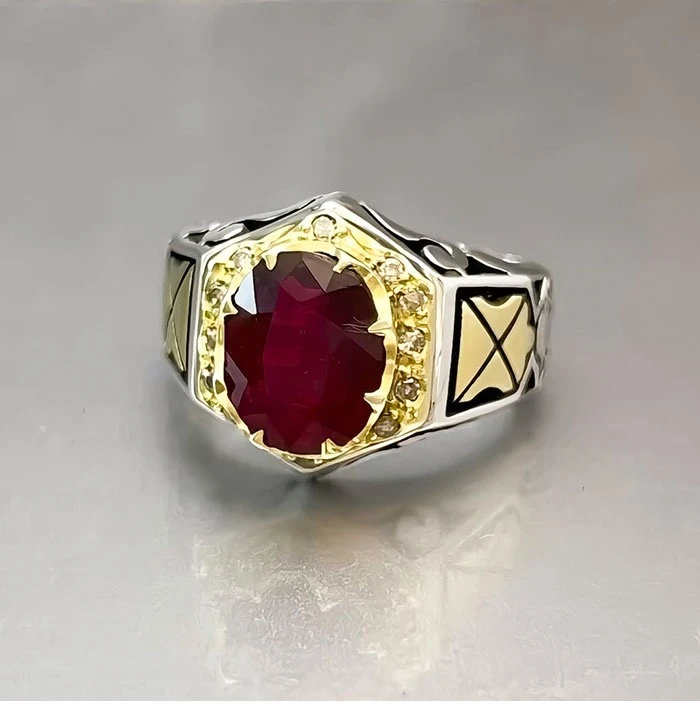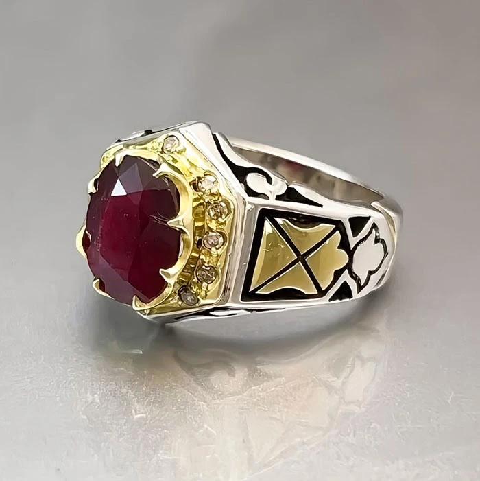 انگشتر نقره مردانه یاقوت سرخ آفریقایی کد S133153