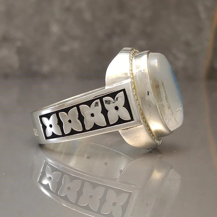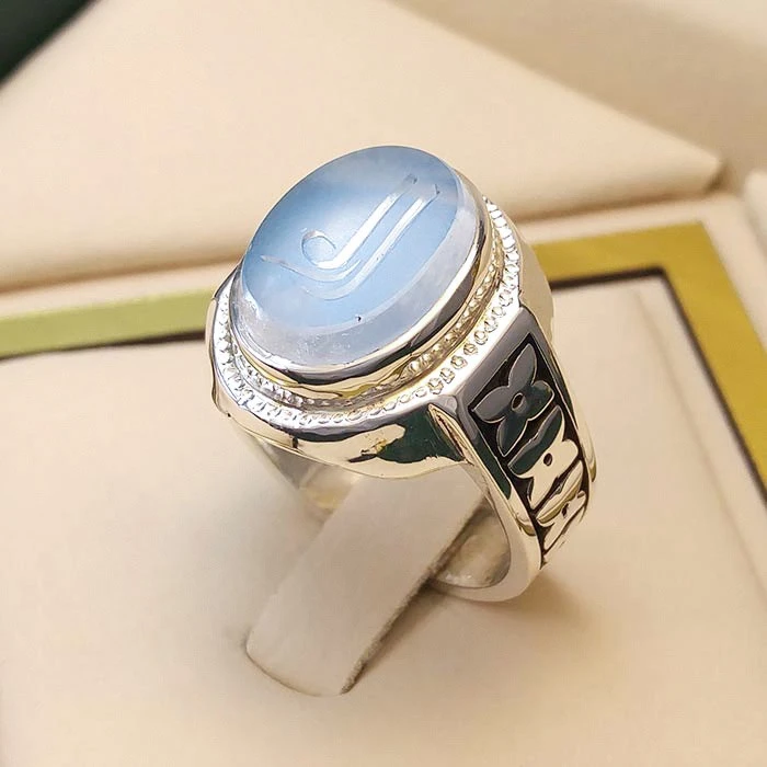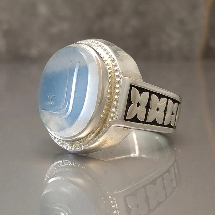 انگشتر نقره مردانه دُرّ نجف خطی زیر فیروزه کد S2267