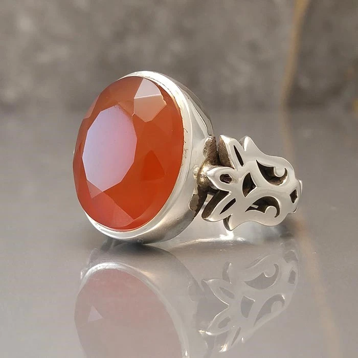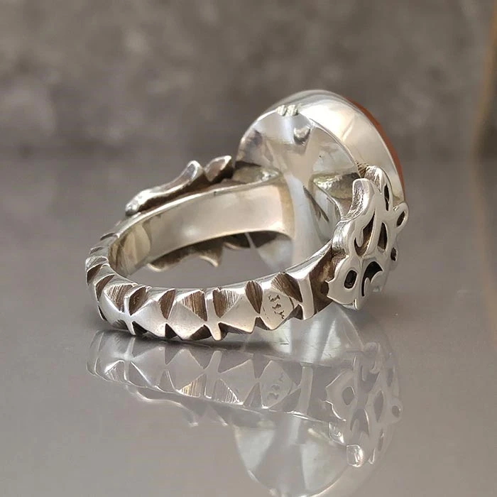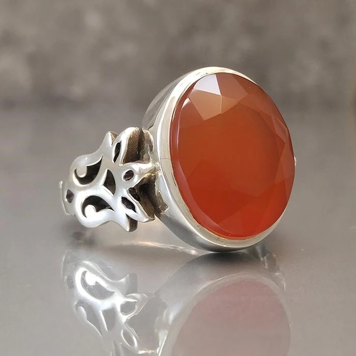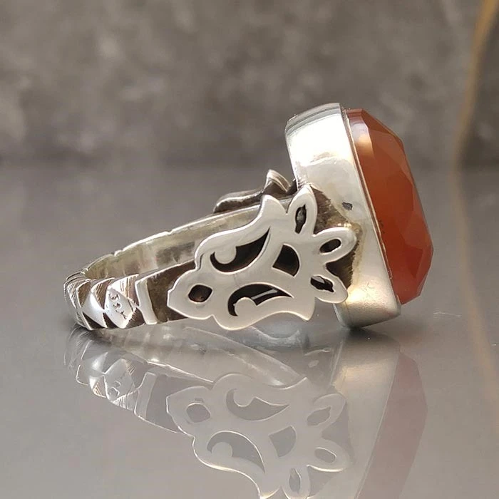 انگشتر نقره مردانه عقیق یمنی سرخ الماس تراش کد S2273