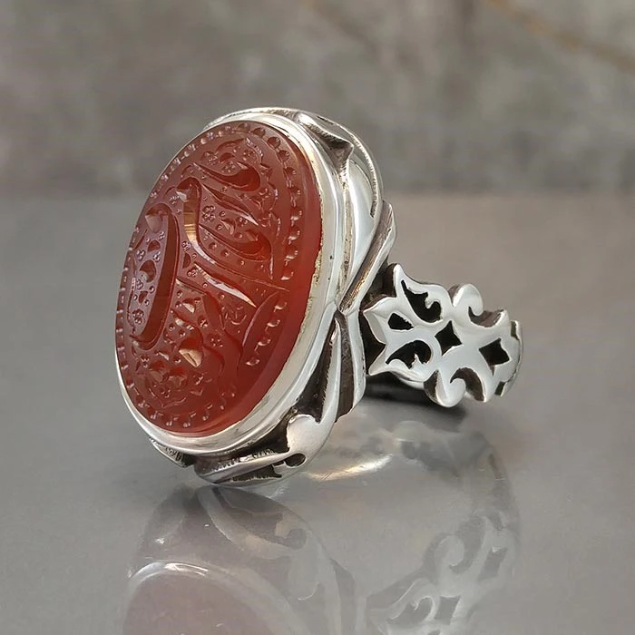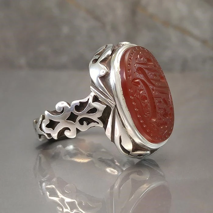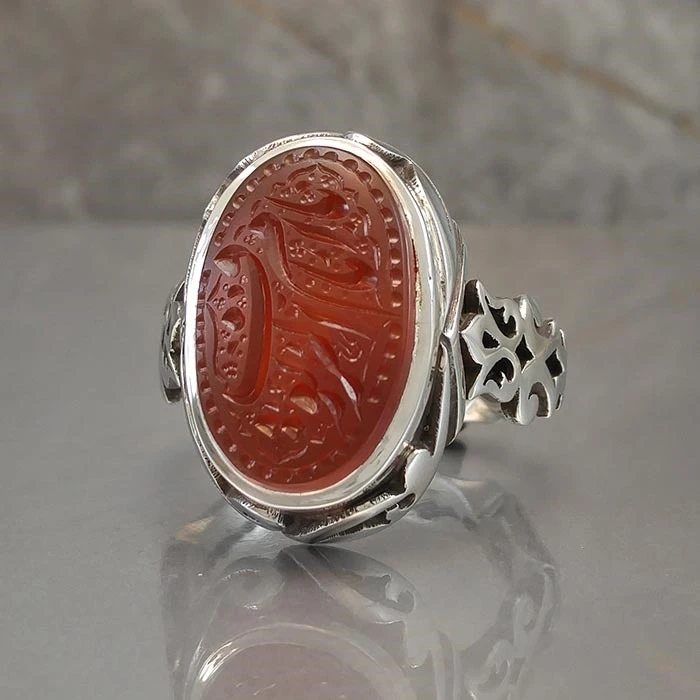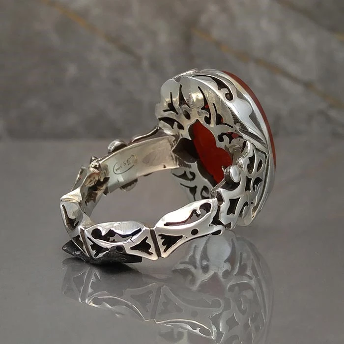 انگشتر نقره مردانه عقیق یمنی سرخ خطی کد S2284